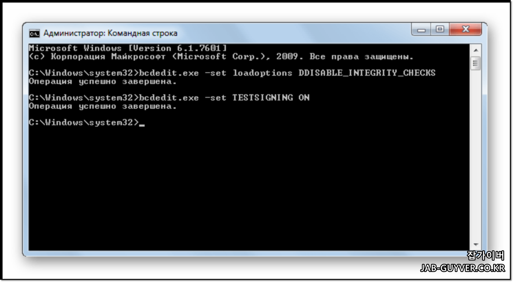 윈도우7 서명되지 않은 드라이브 복구 및 테스트