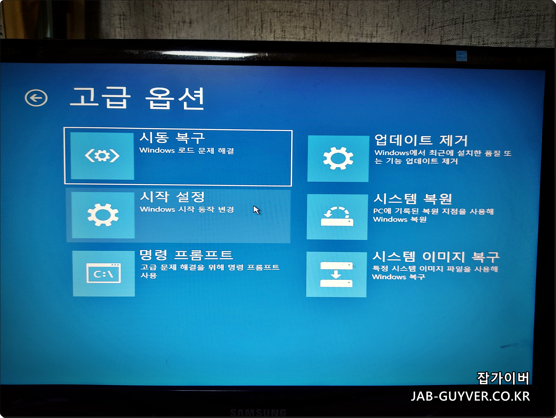 Q1: 윈도우 복구 모드에서 "시동 복구" 옵션을 선택했는데도 부팅이 안 될 때 해결 방법은?