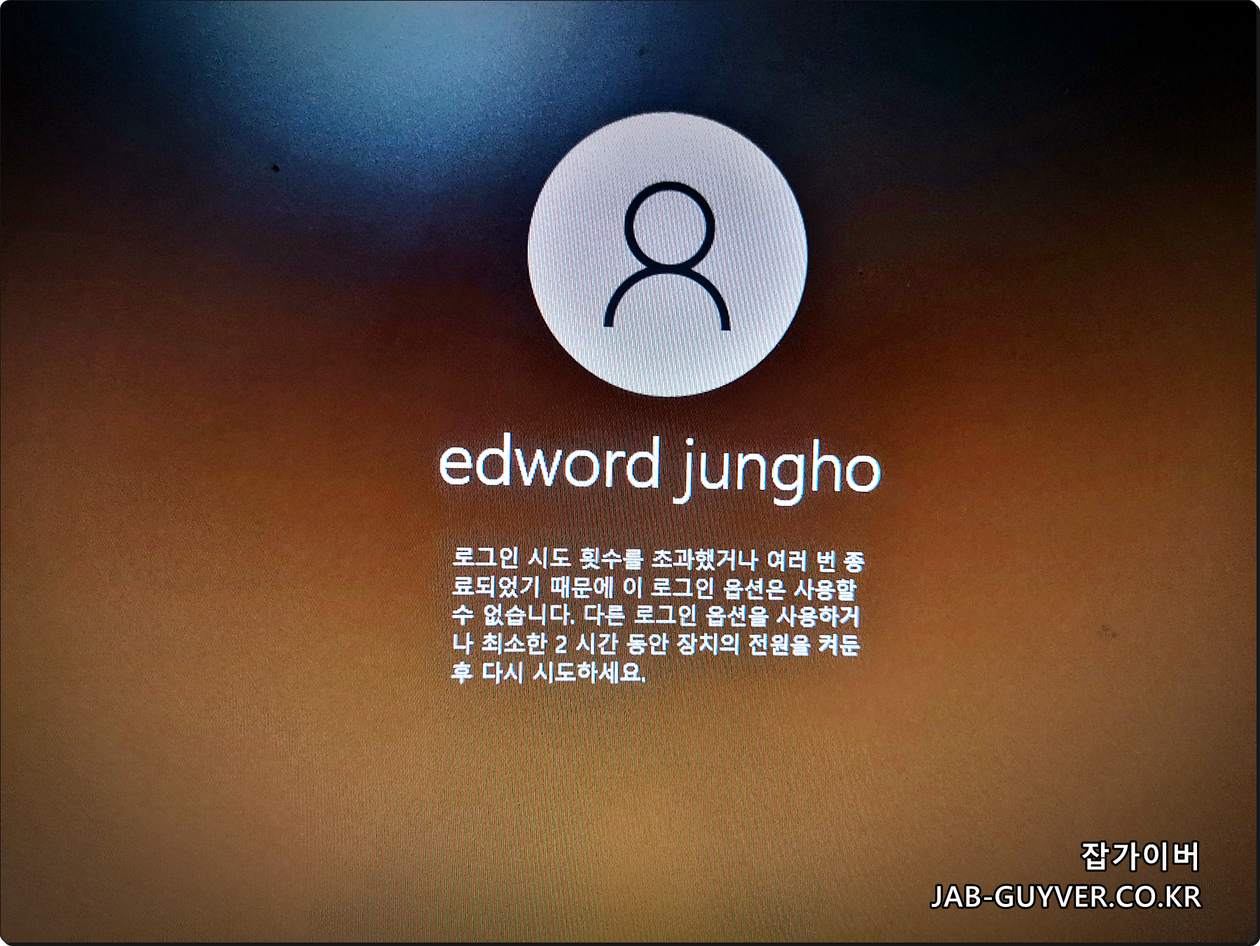 윈도우 로그인 횟수초과 2시간 잠김