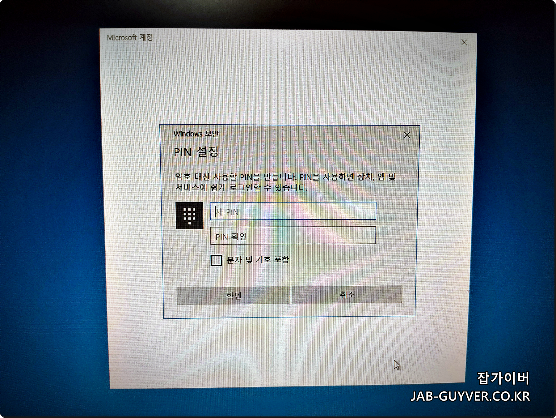 이후 새로운 핀번호 / 윈도우 로그인 비밀번호 설정합니다.