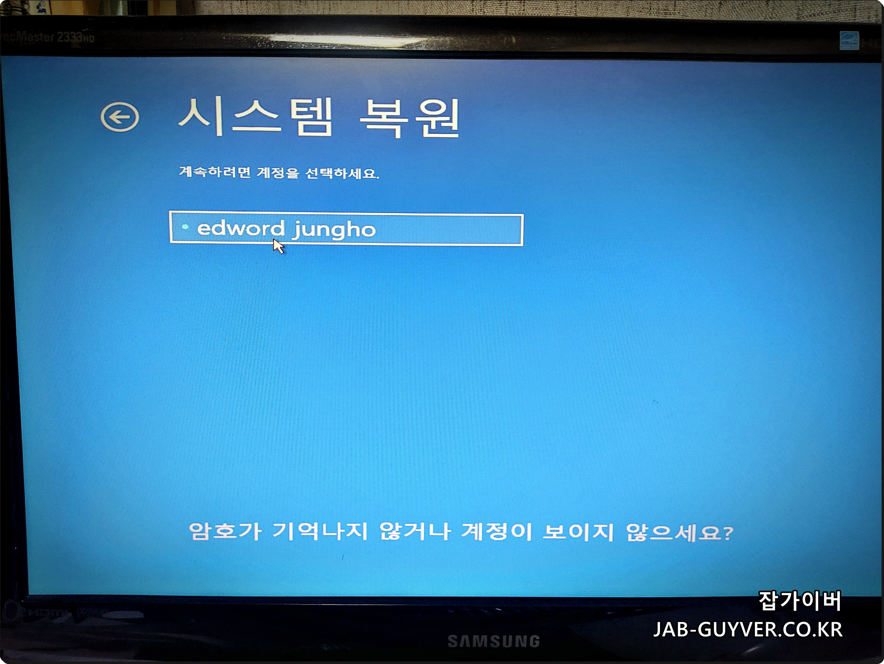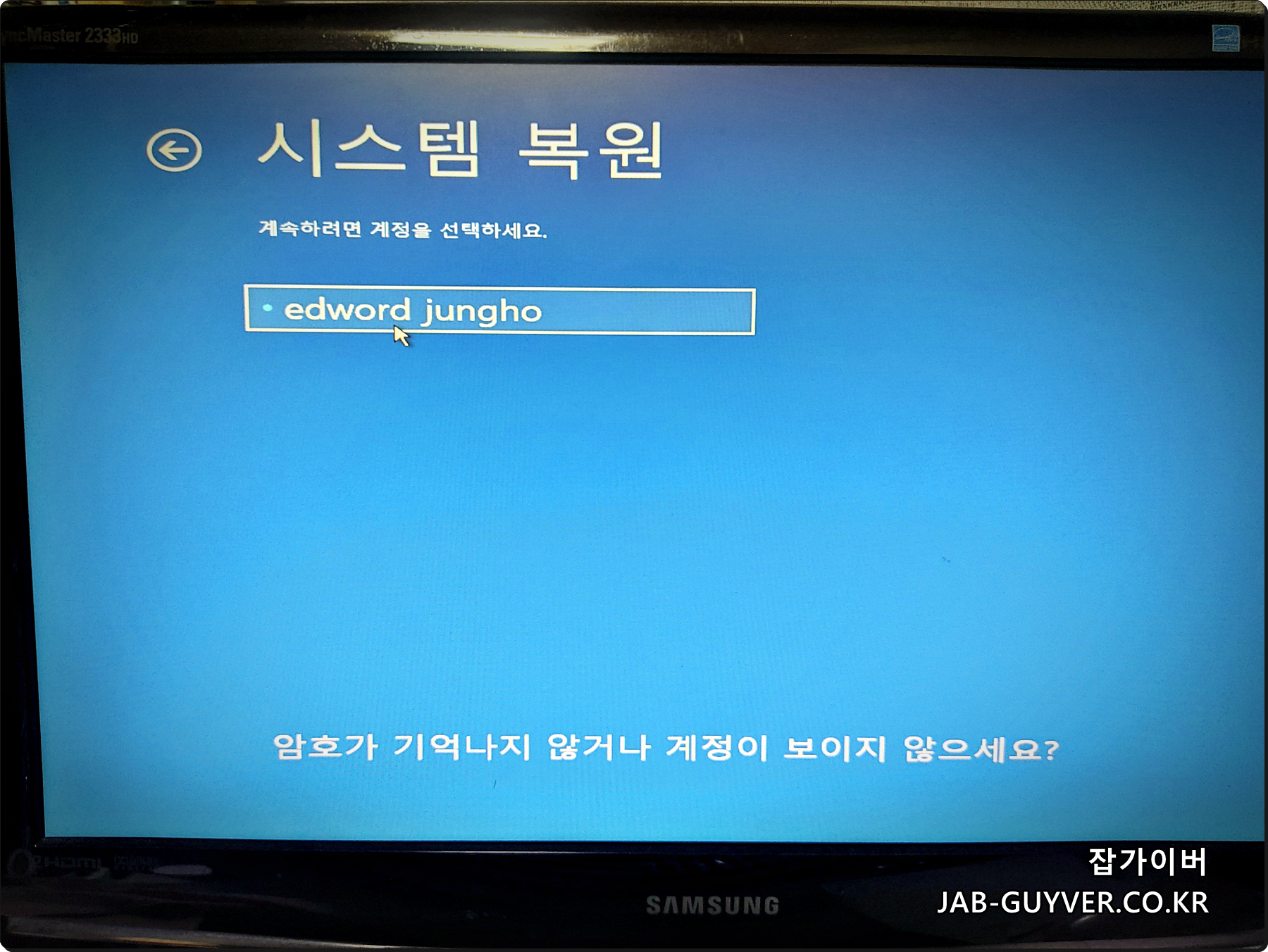 윈도우10 비밀번호 분실 기억안날때 변경방법