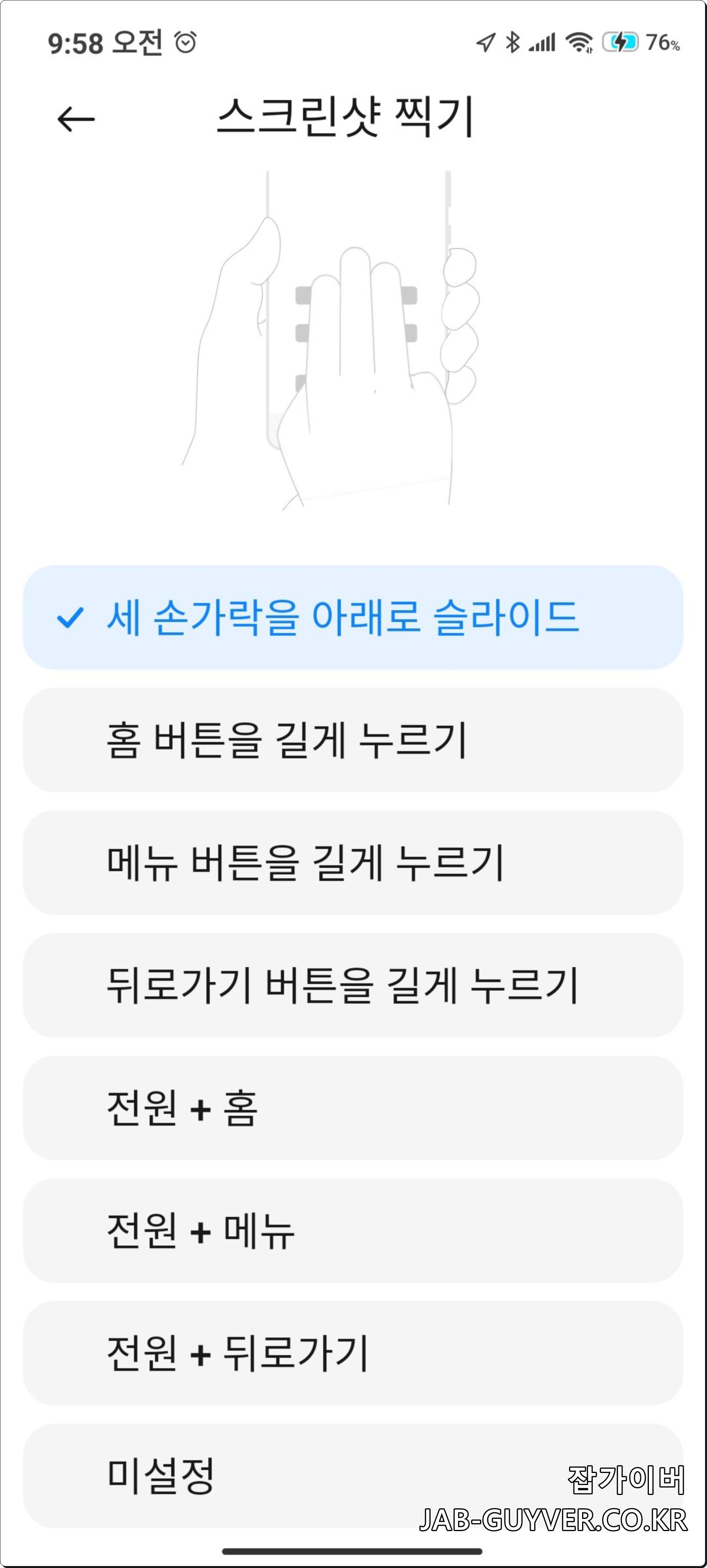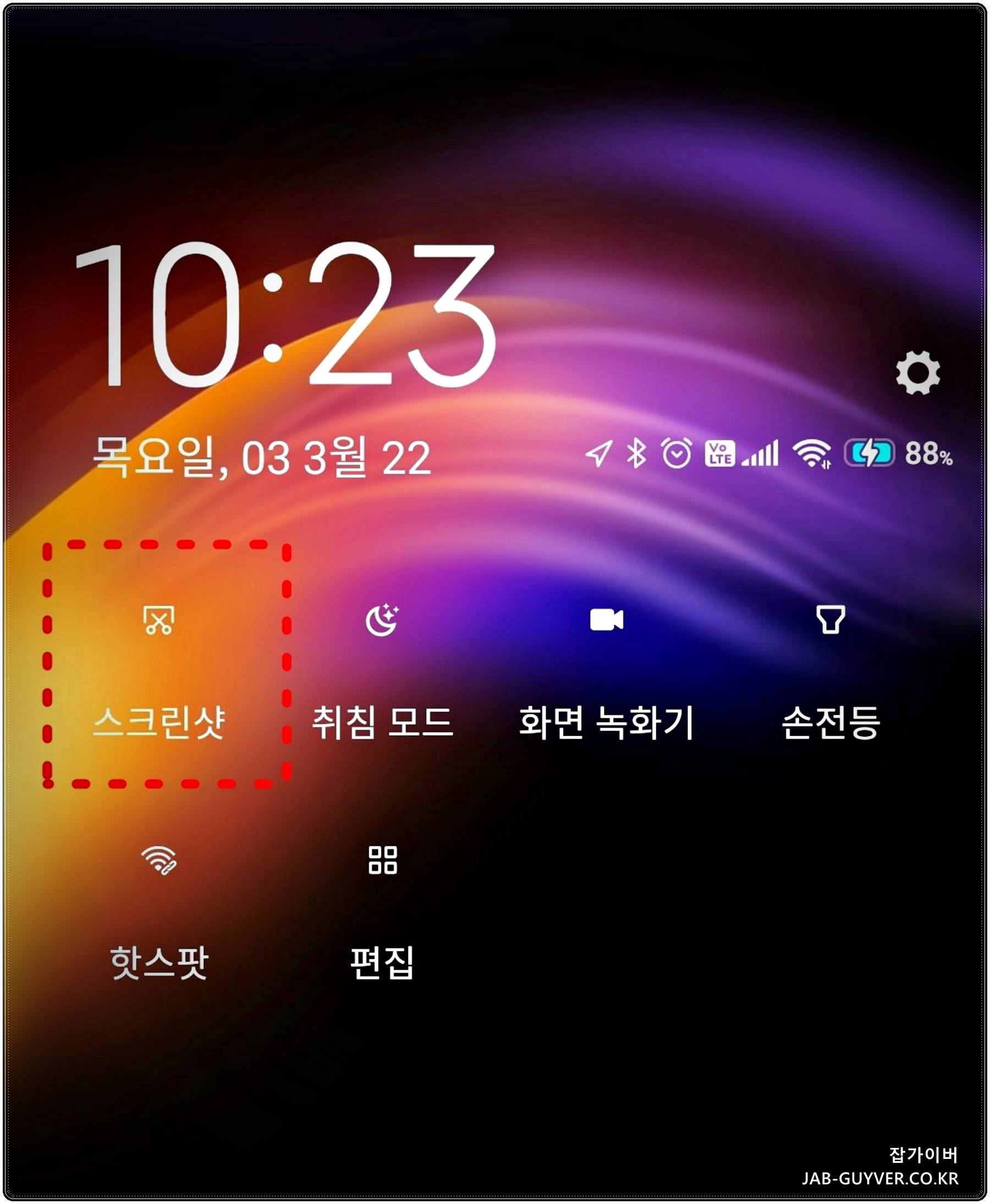 다른방법으로는 전원버튼과 볼륨키 하단으로 화면캡쳐가 가능합니다.