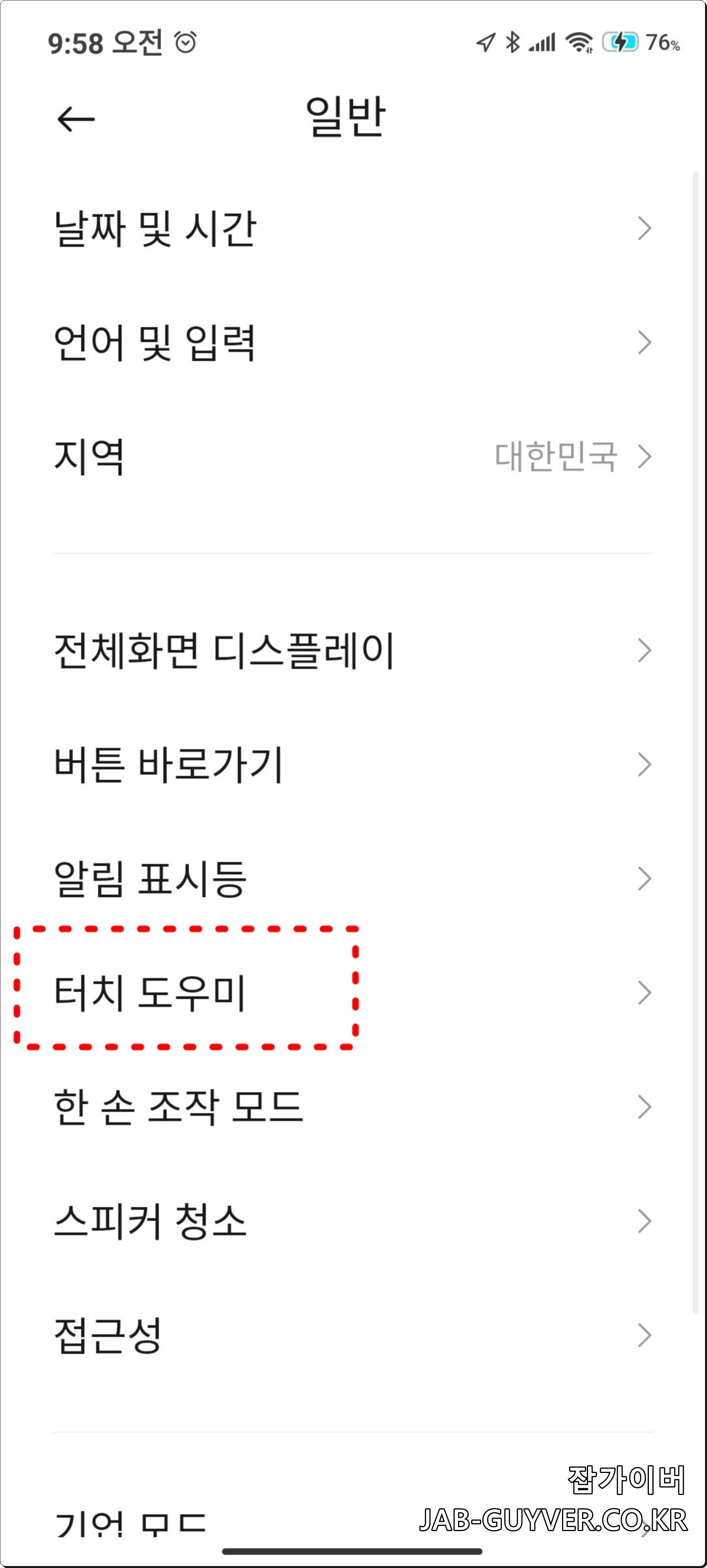 샤오미 핸드폰 설정 -> 일반 -> 터치도우미 들어갑니다.