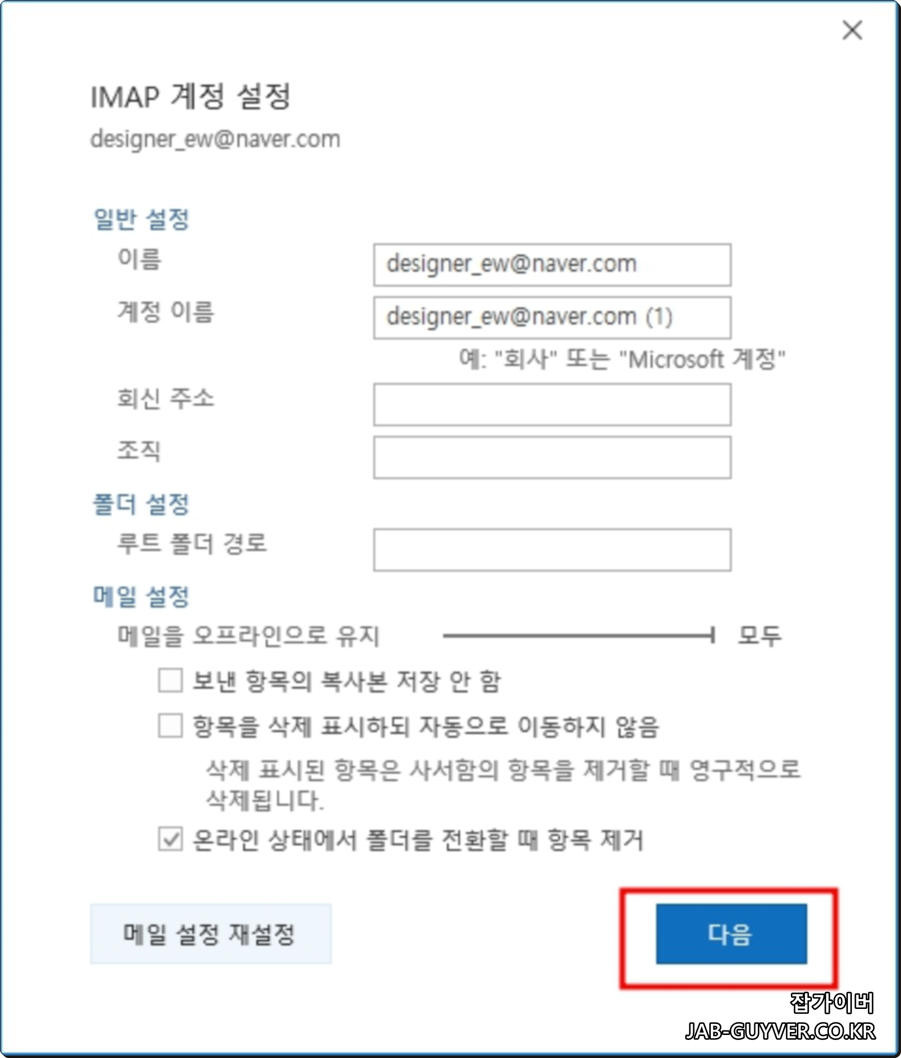 아웃룩 메일연동 네이버 구글 다음 설정방법