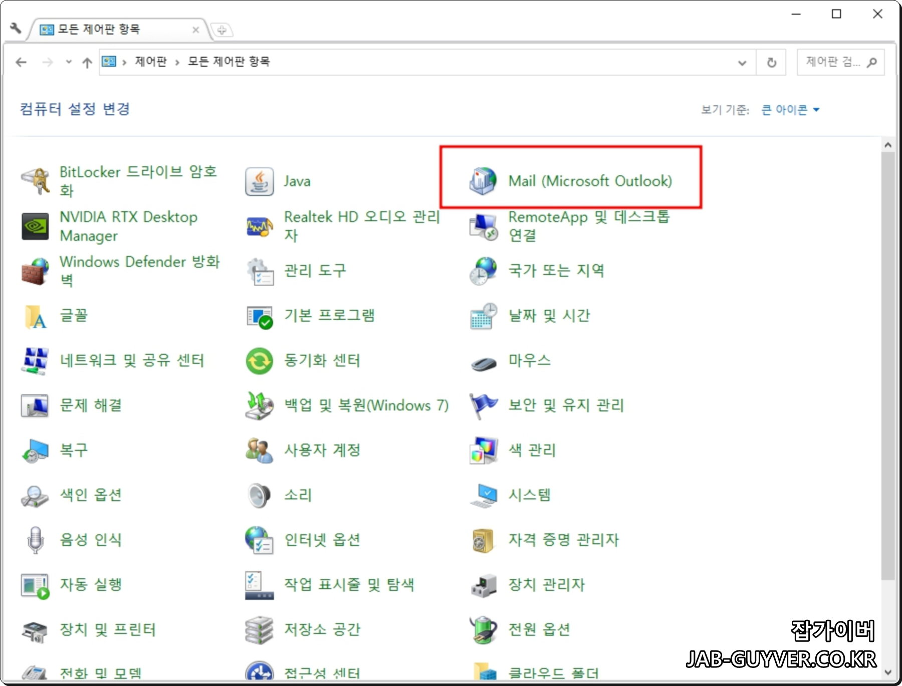 제어판으로 들어가 Maill "Microsoft Outlook"을 선택합니다.