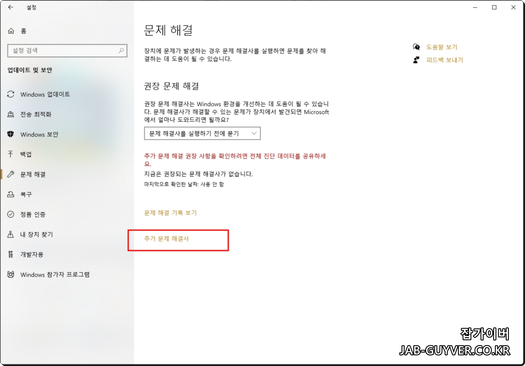 - 문제해결사 실행 되면서 작동하지 않는 USB 3.0 을 정상적으로 작동되도록 복구합니다.