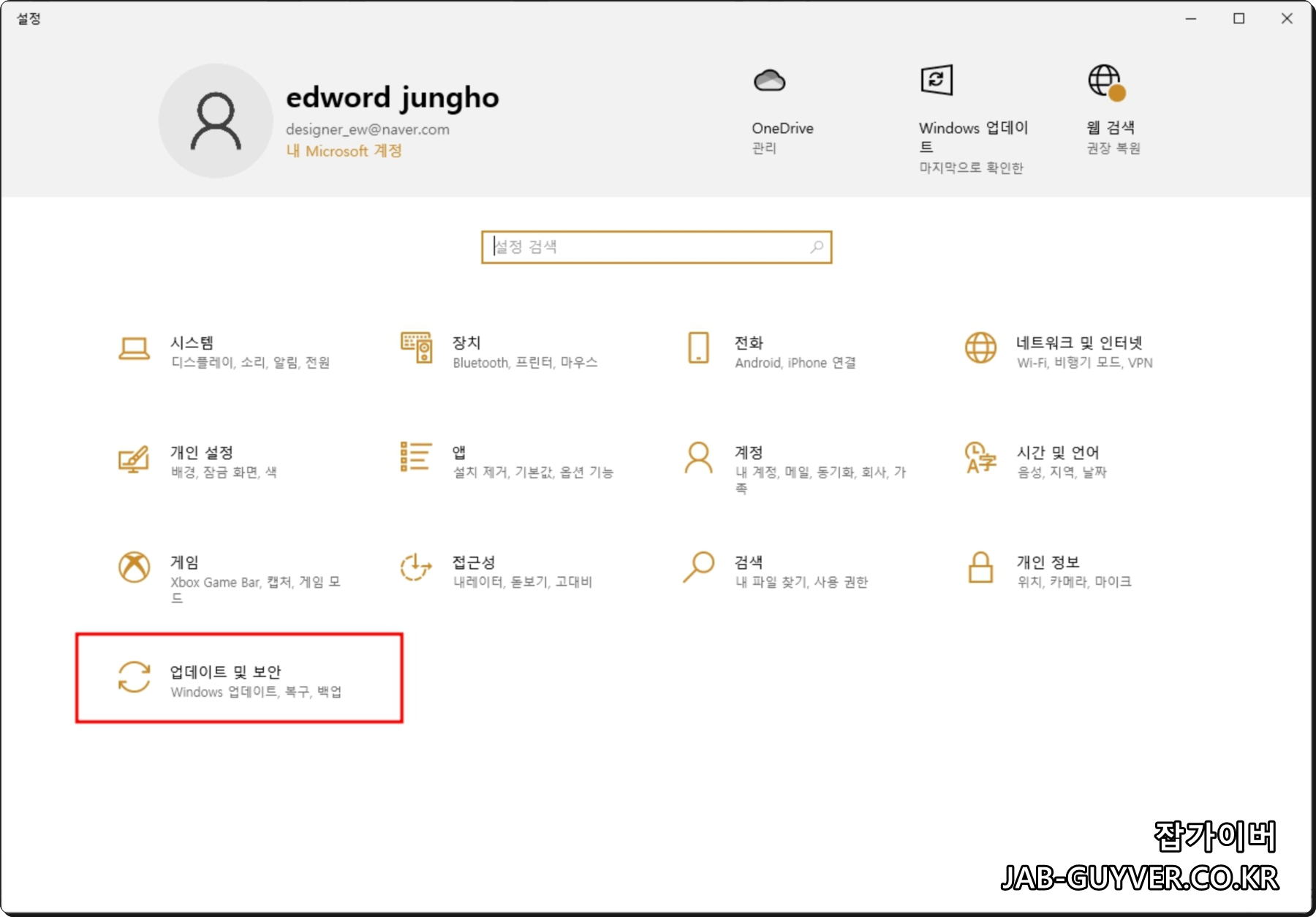 Windows 키 + I을 눌러 설정을 연 다음 업데이트 및 보안을 실행합니다.