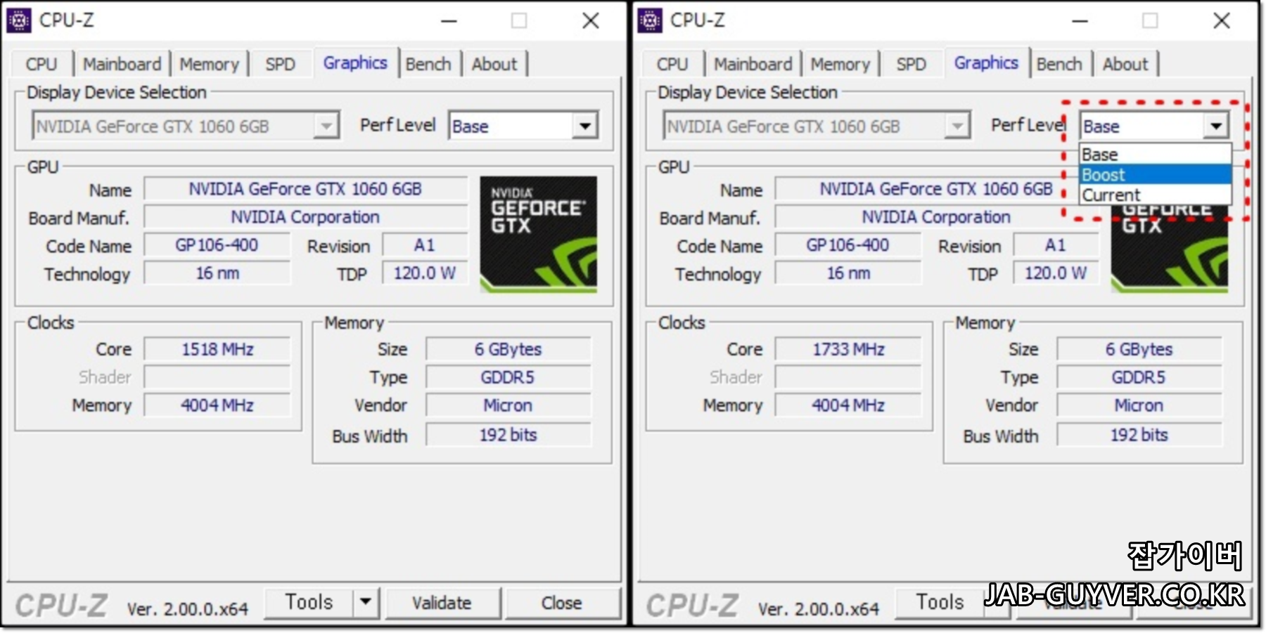 또한, 장착된 그래픽카드의 기본 성능과 현재 실제로 사용되는 성능을 비교하여, 그래픽카드가 제대로 성능을 발휘하고 있는지를 확인할 수 있습니다.