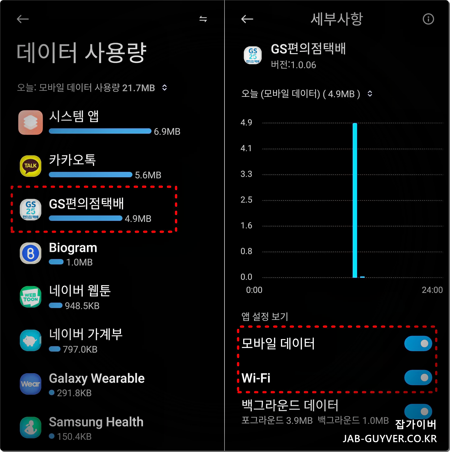 핸드폰 모바일데이터 끄기 - 앱 인터넷 연결 차단 절약하기