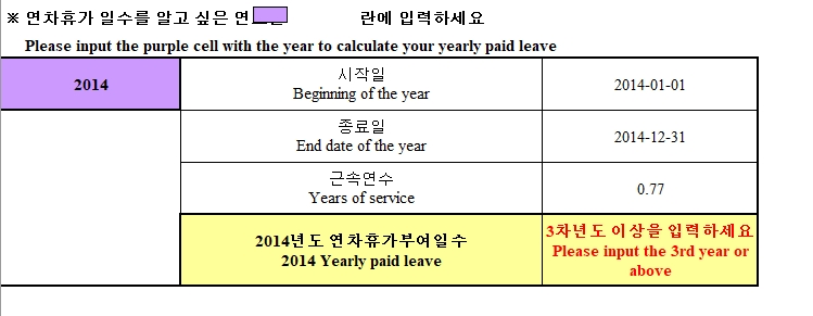 | 연차 휴가 일수 | 15일 | 16일 | 17일 | 18일 | 19일 | 20일 | ||||||