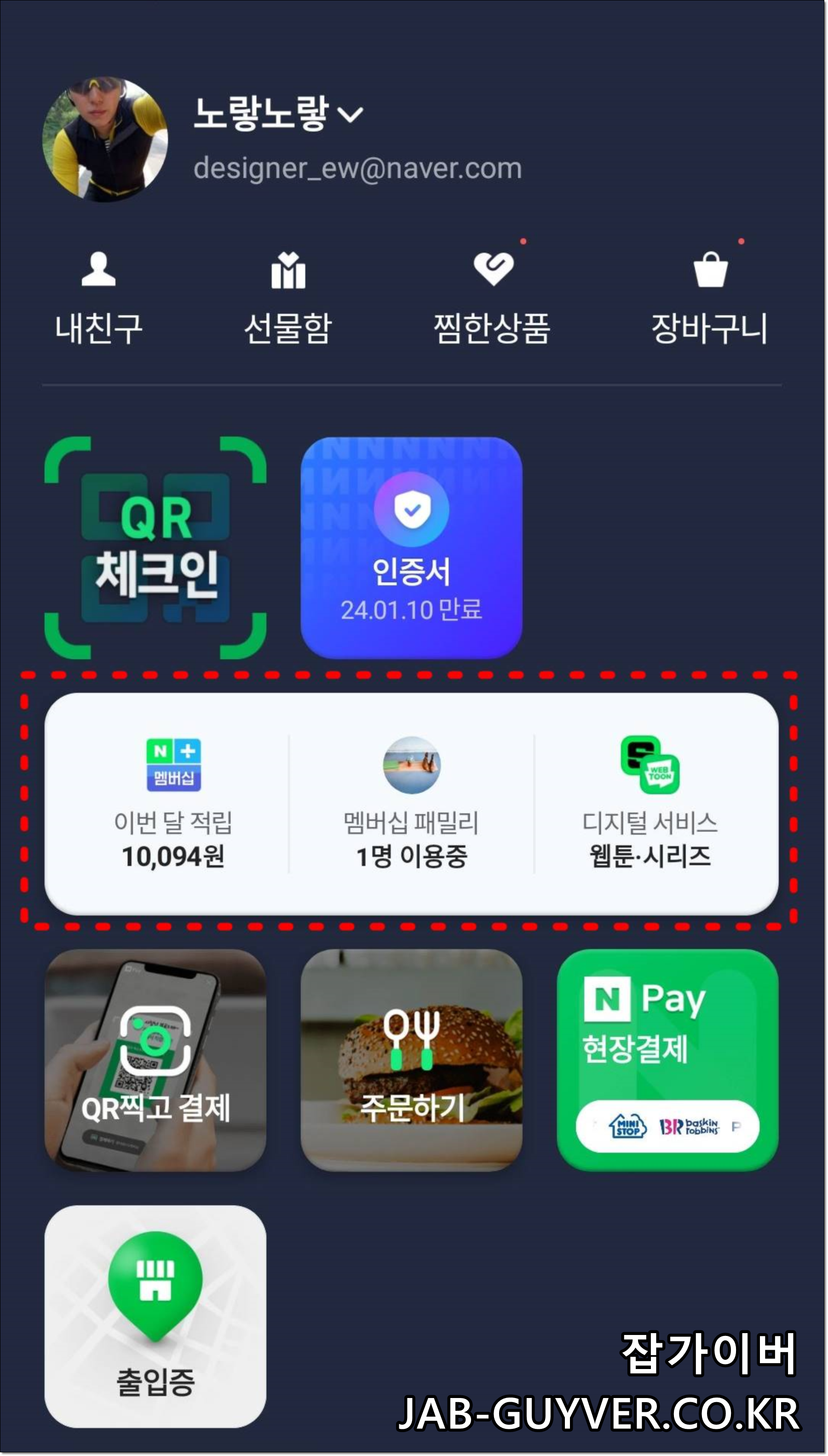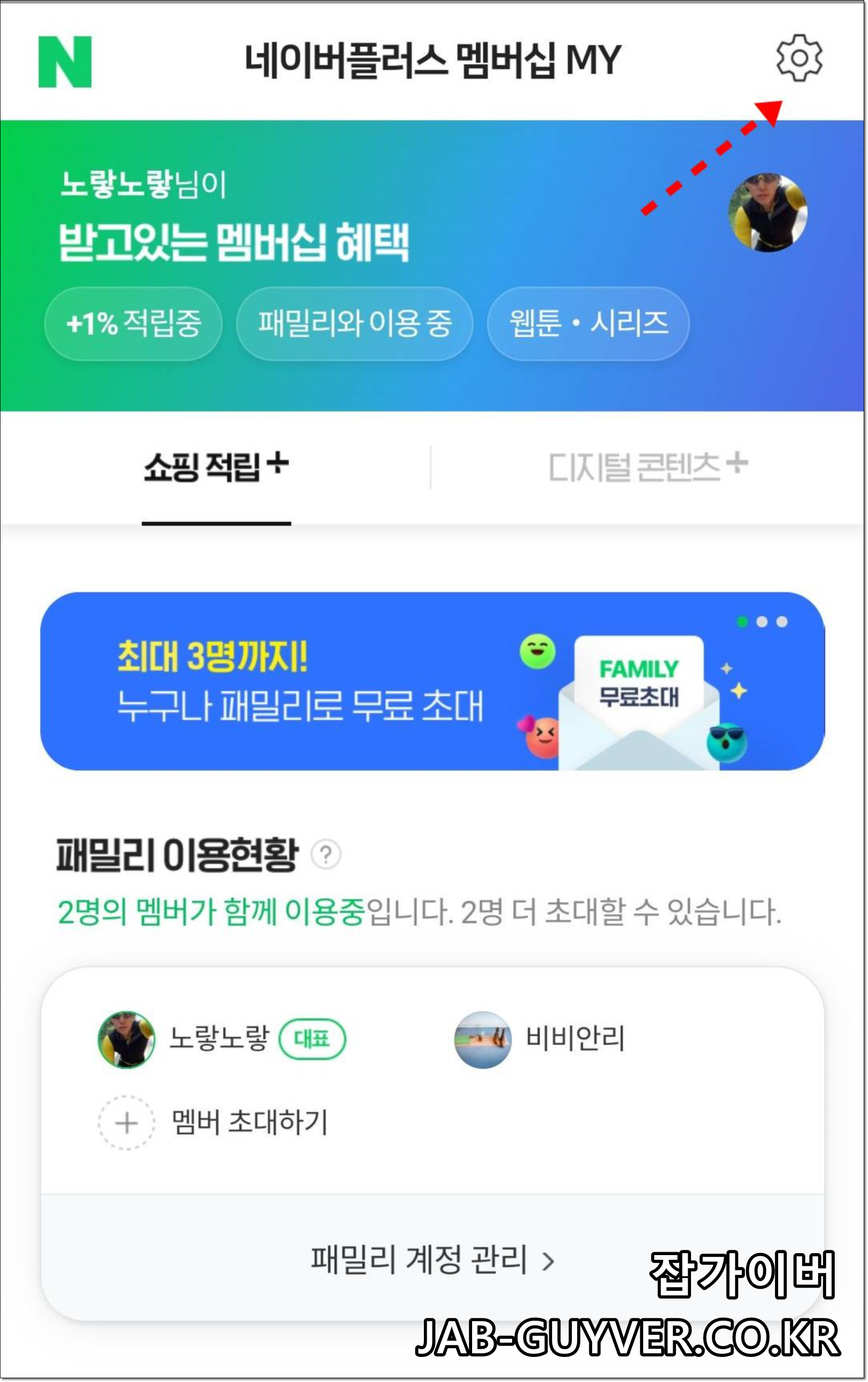 우측 상단 설정으로 들어간 다음 네이버플러스멤버십을 확인합니다.