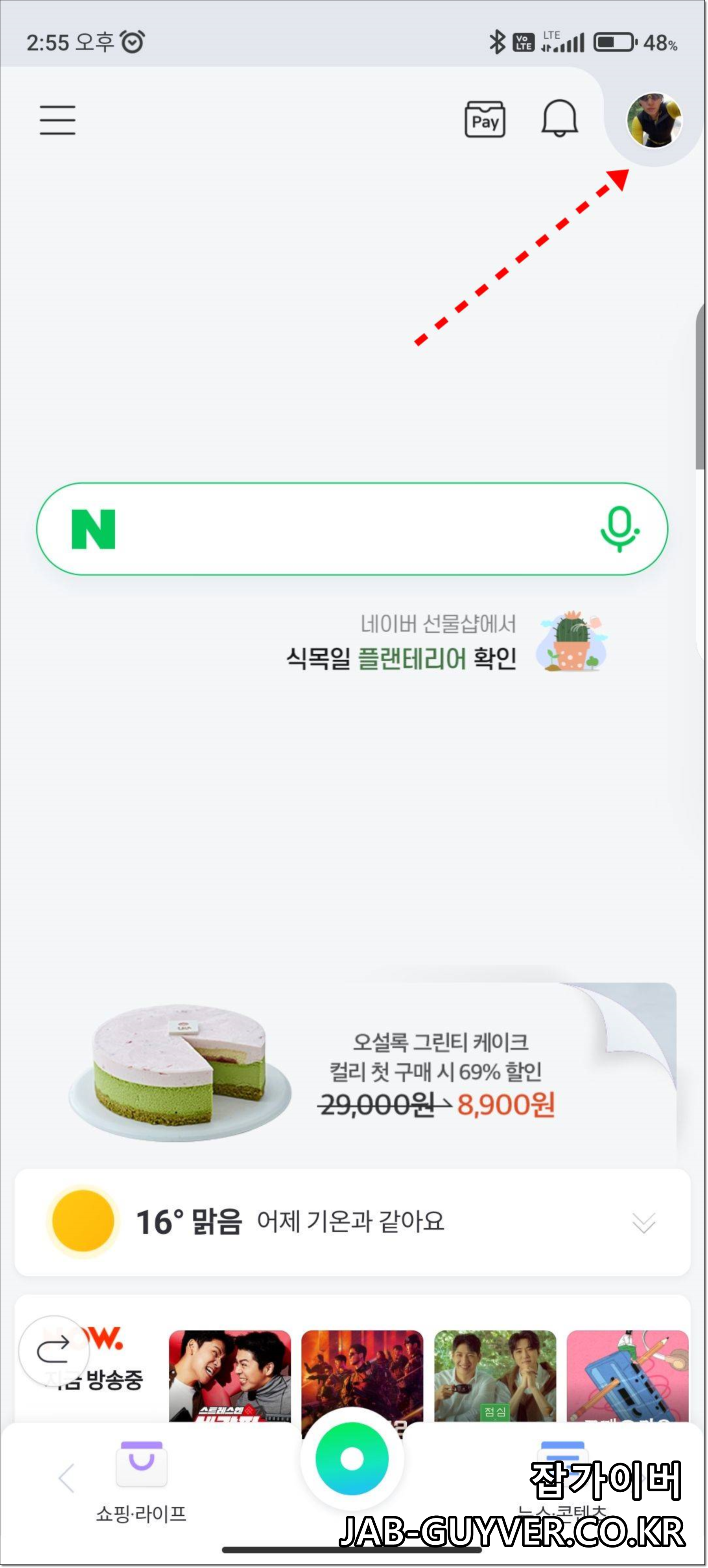 네이버 앱을 실행합니다.