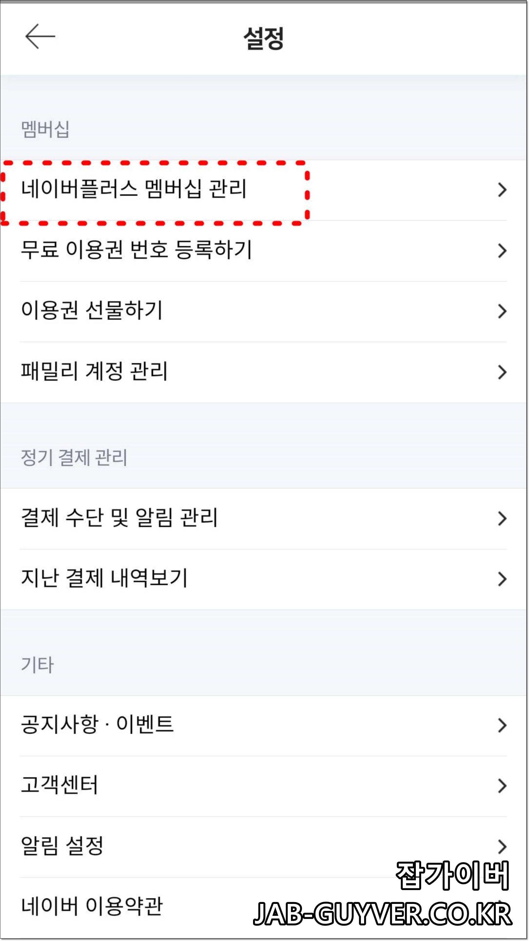 더이상 네이버플러스멤버십이 필요없다면 설정 -> 네이버플러스 멤버십 관리로 들어갑니다.
