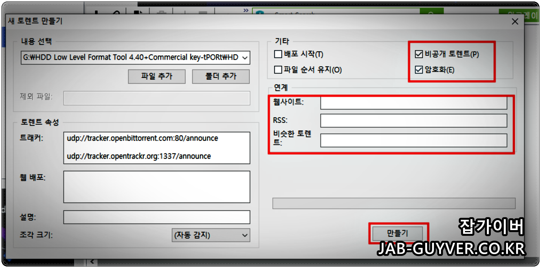 토렌트 배포 파일 만들기 .Torrent 비공개 암호 공유배포