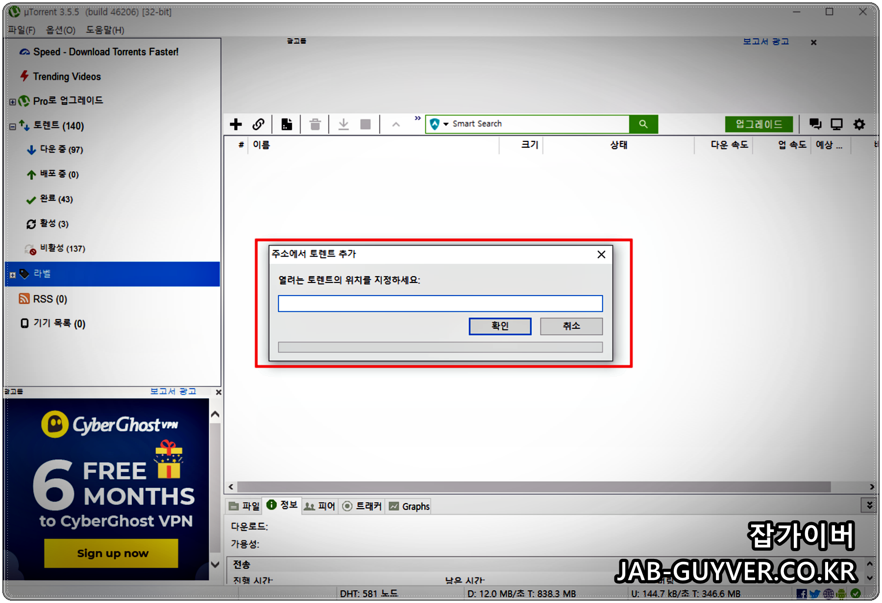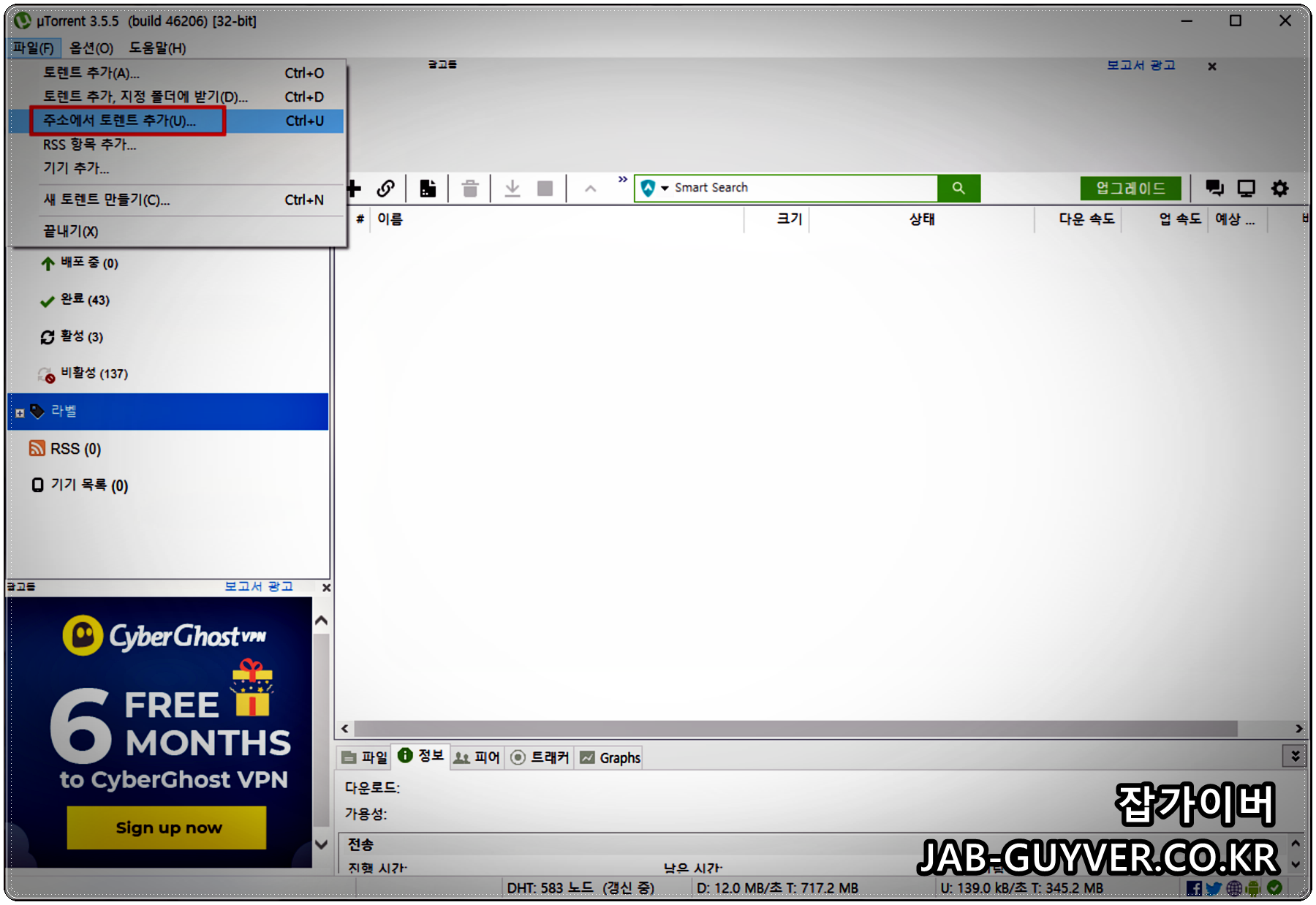 uTorrent 기준으로 진행되면 BitTorrent도 크게 다르지 않습니다.
