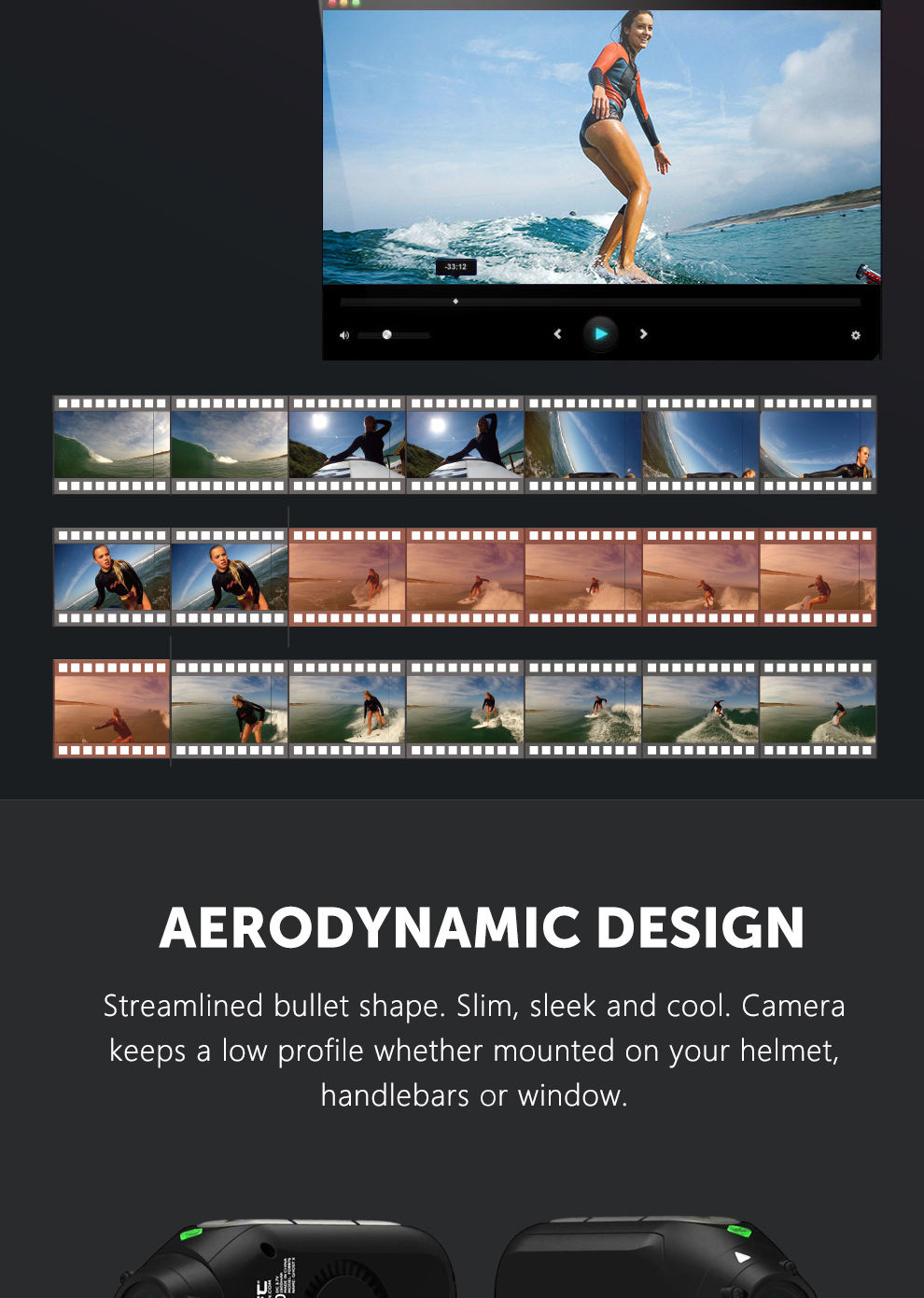 드리프트 이노베이션은 예전부터 오토바이·자전거 라이더를 겨냥한 옆으로 길쭉한 ‘총알형’ 액션캠으로 유명합니다. 고프로처럼 위로 돌출되는 형태보다 공기저항과 디자인을 중시하는 라이더에게 잘 맞고, 헬멧 측면이나 스템 옆에 붙였을 때도 상대적으로 자연스러운 실루엣을 유지해 줍니다.