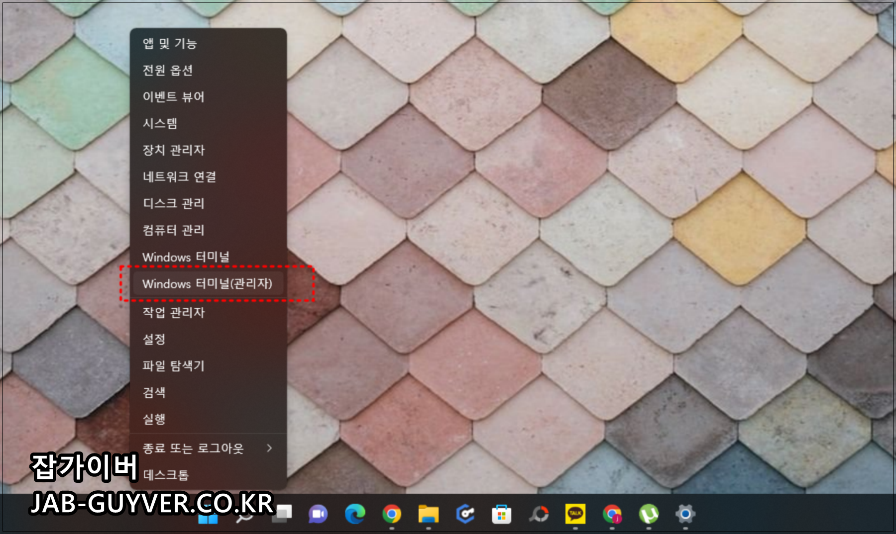 윈도우 + X키를 눌러 Winodws 터미널(관리자)를 실행합니다.