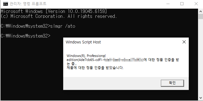 slmgr /ato 엔터