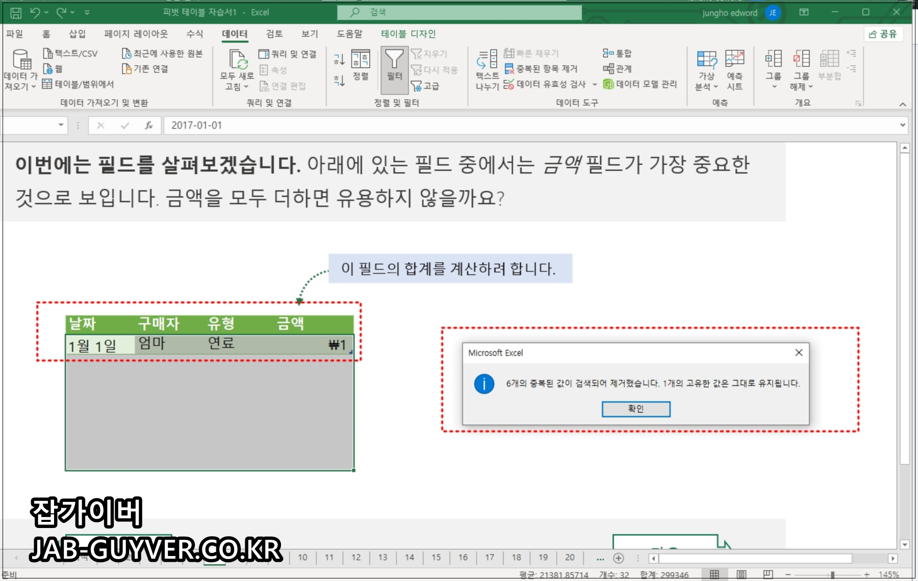 엑셀 중복 값 삭제 제거방법 - Excel Tip