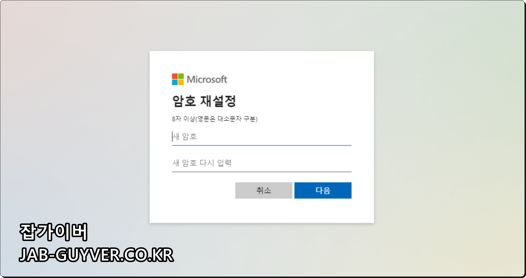 로그인 옵션에서 암호계정 암호변경을 통해 새로운 암호를 입력합니다.