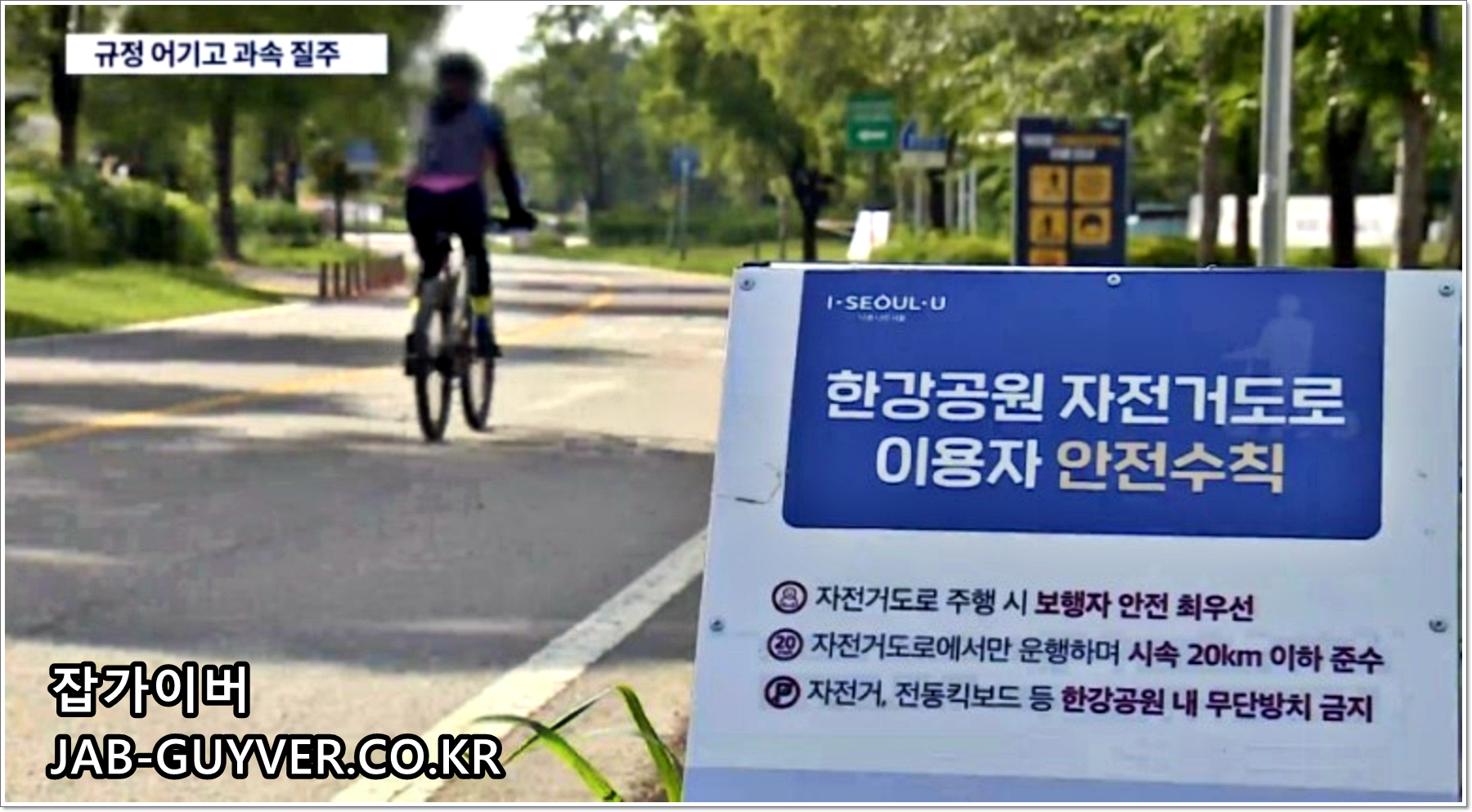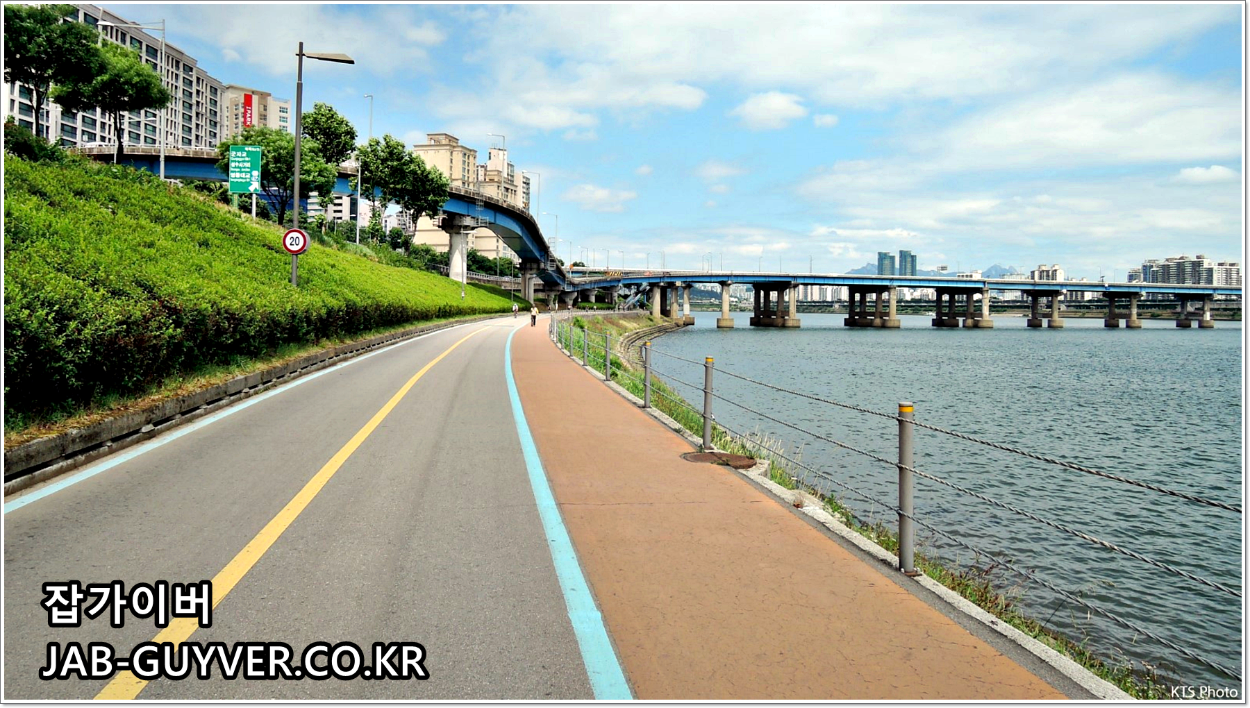 여기서 주의할 점은 한강 자전거도로는 시속 20km를 권장하며 중앙선이 있지만 별도의 효력이 있지 않습니다.