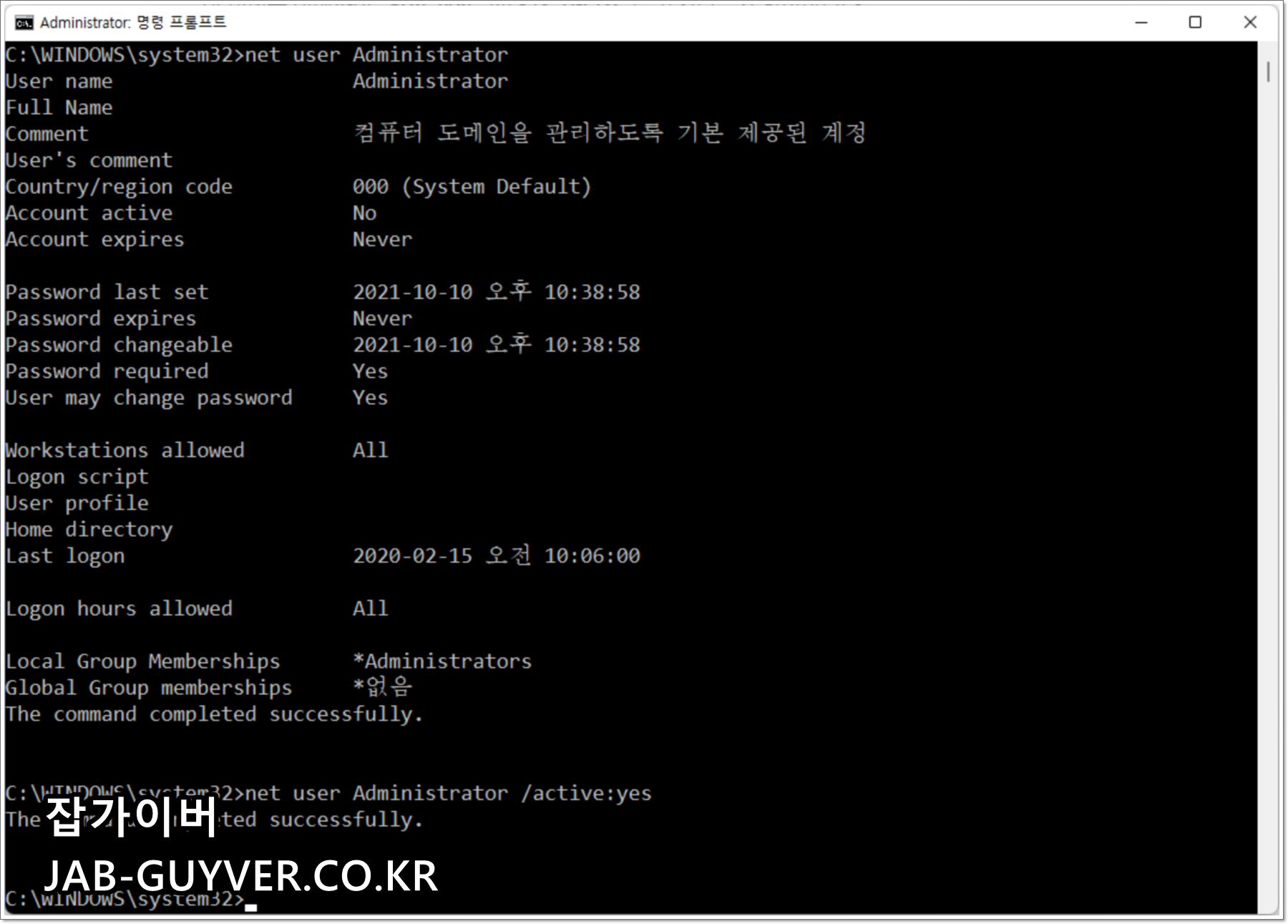 관리자계정 활성화 참고