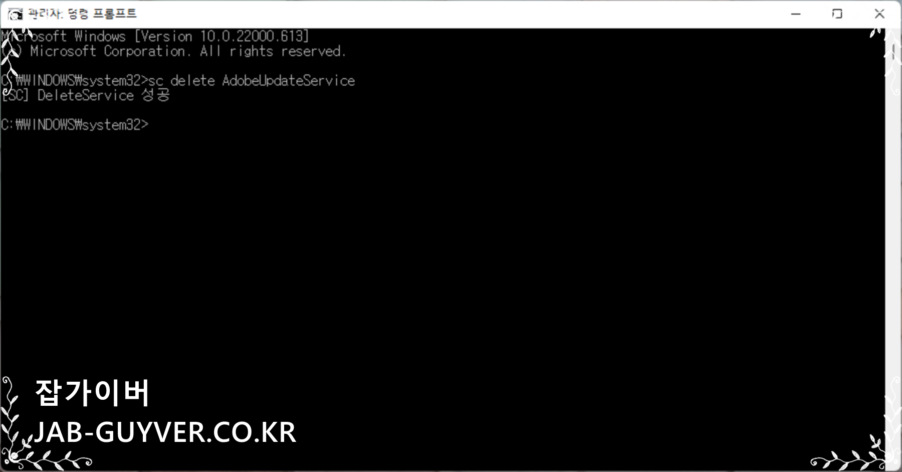 아래 명령어를 입력 후 엔터를 눌러주면 Adobe 자동업데이트 프로그램이 삭제됩니다.
