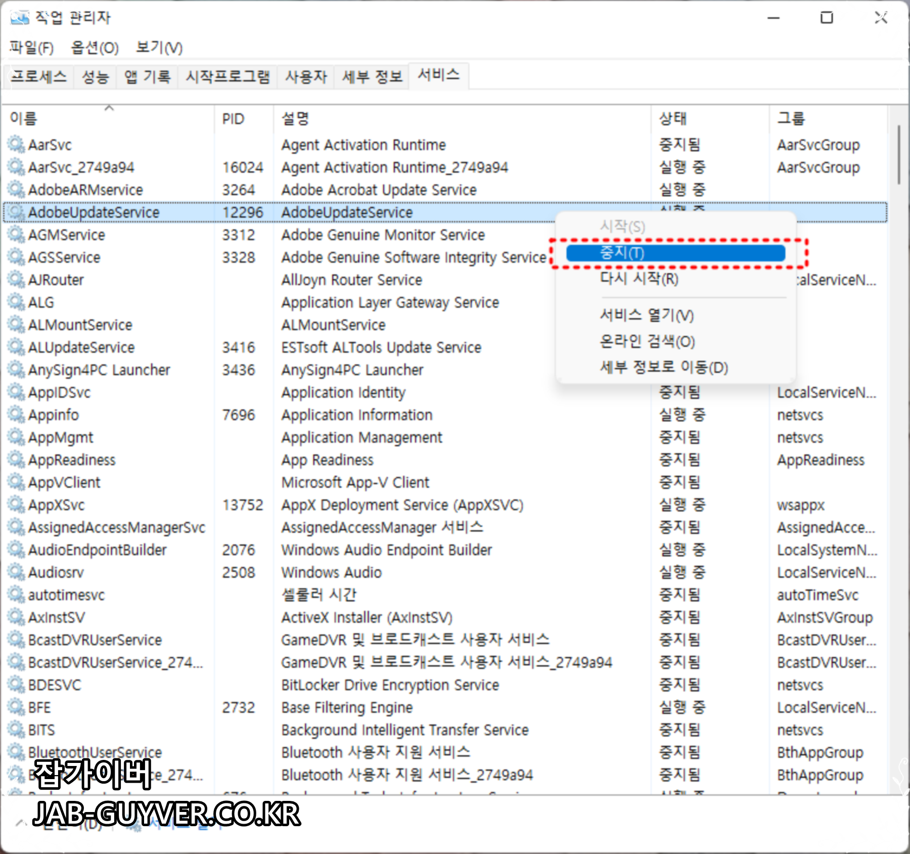 AdobeUpdateServie 중지