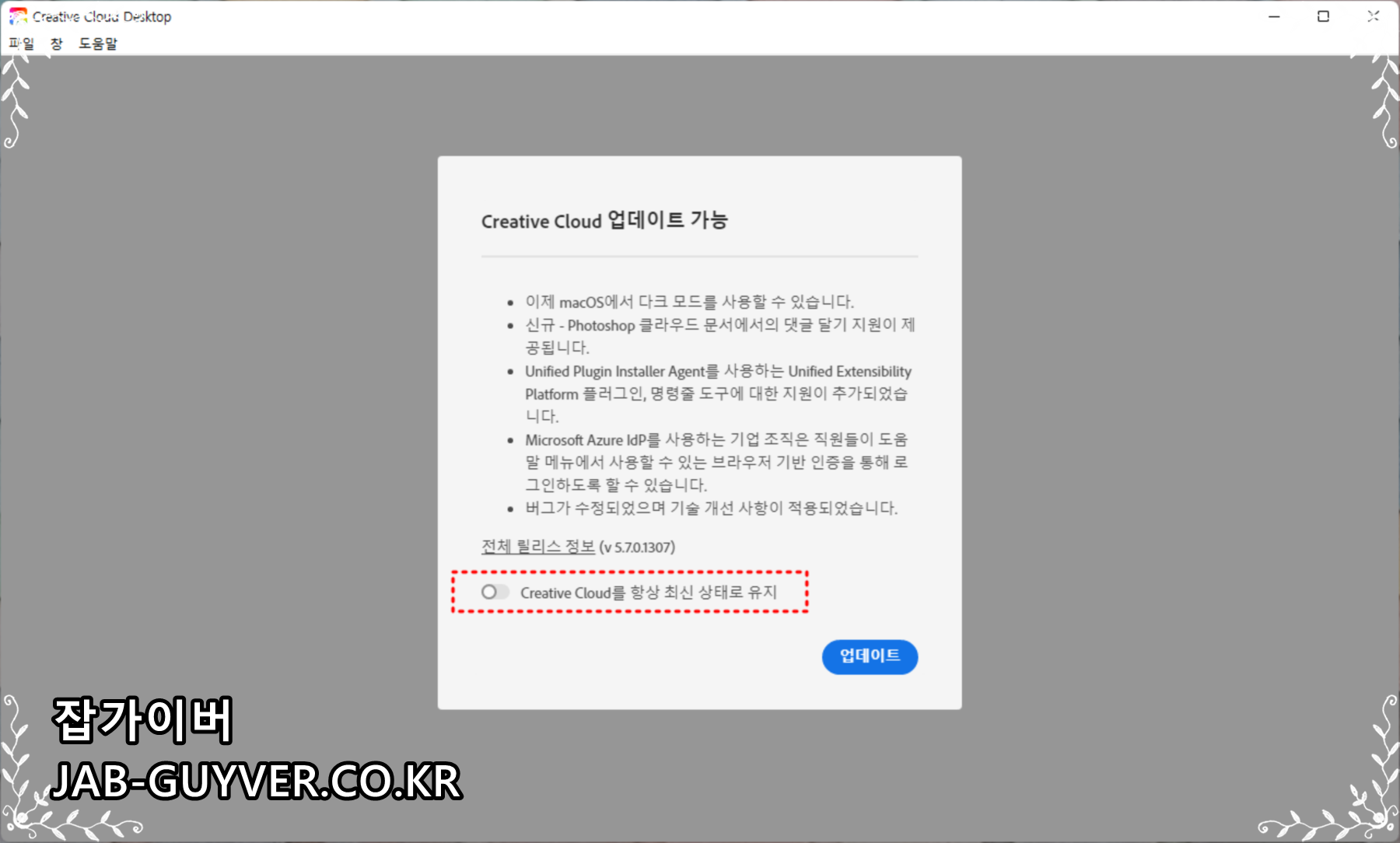 Creative Cloud 자동 업데이트 알림