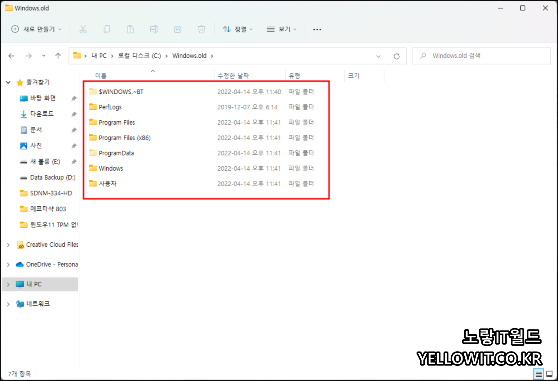 C드라이브에서 Windows.old 위치 확인