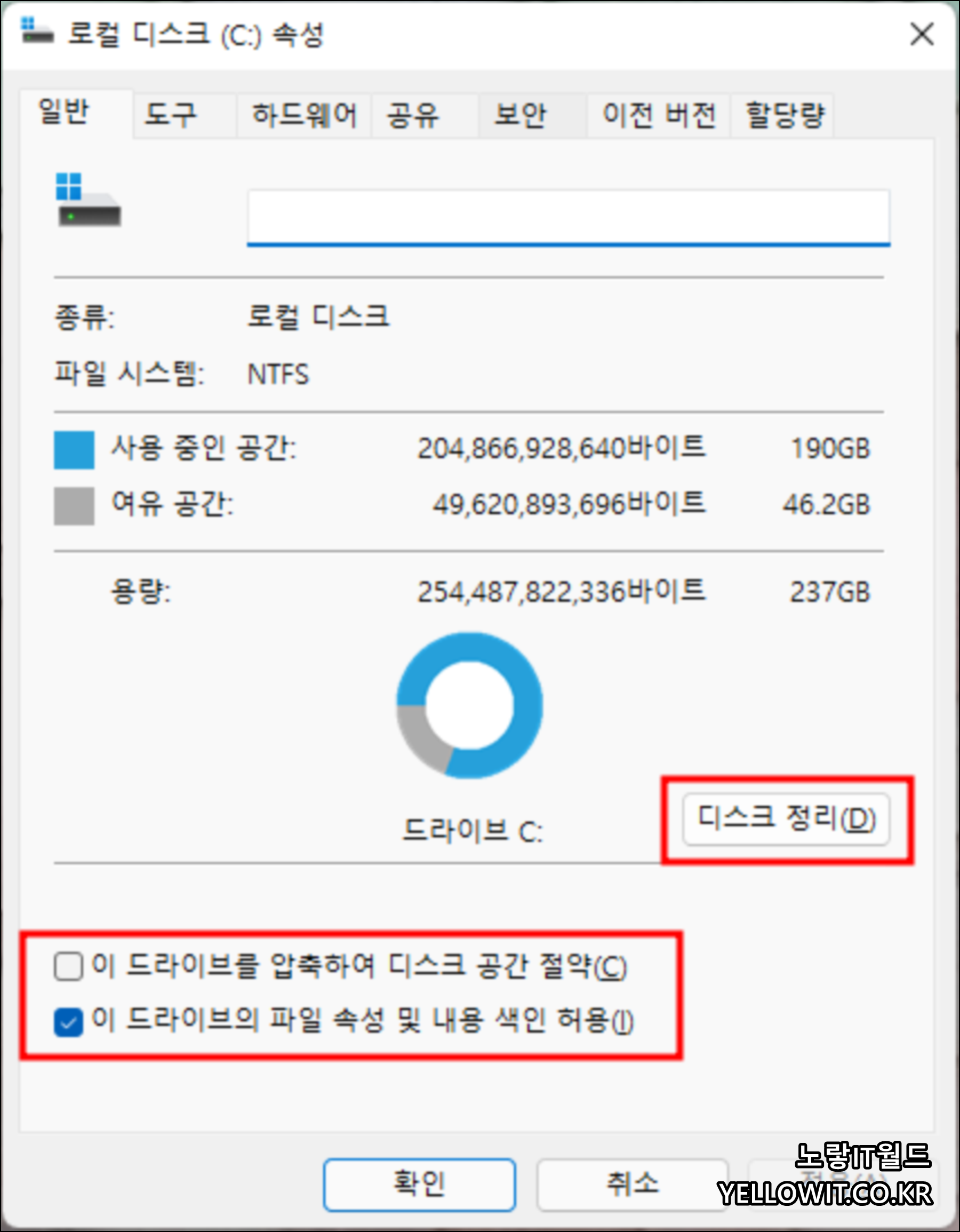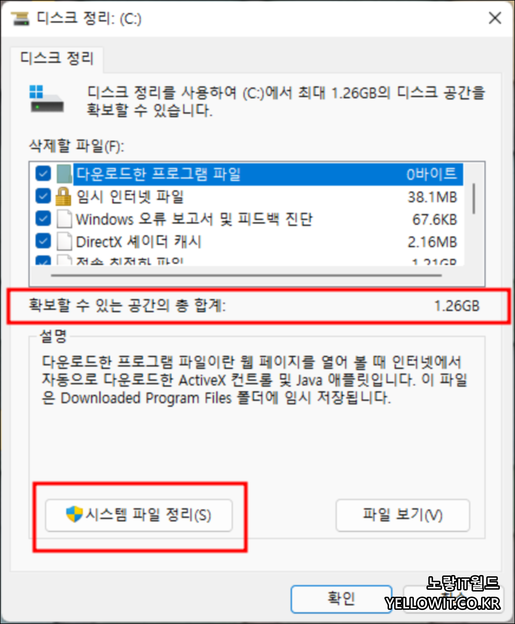 디스크 정리로 임시파일부터 정리