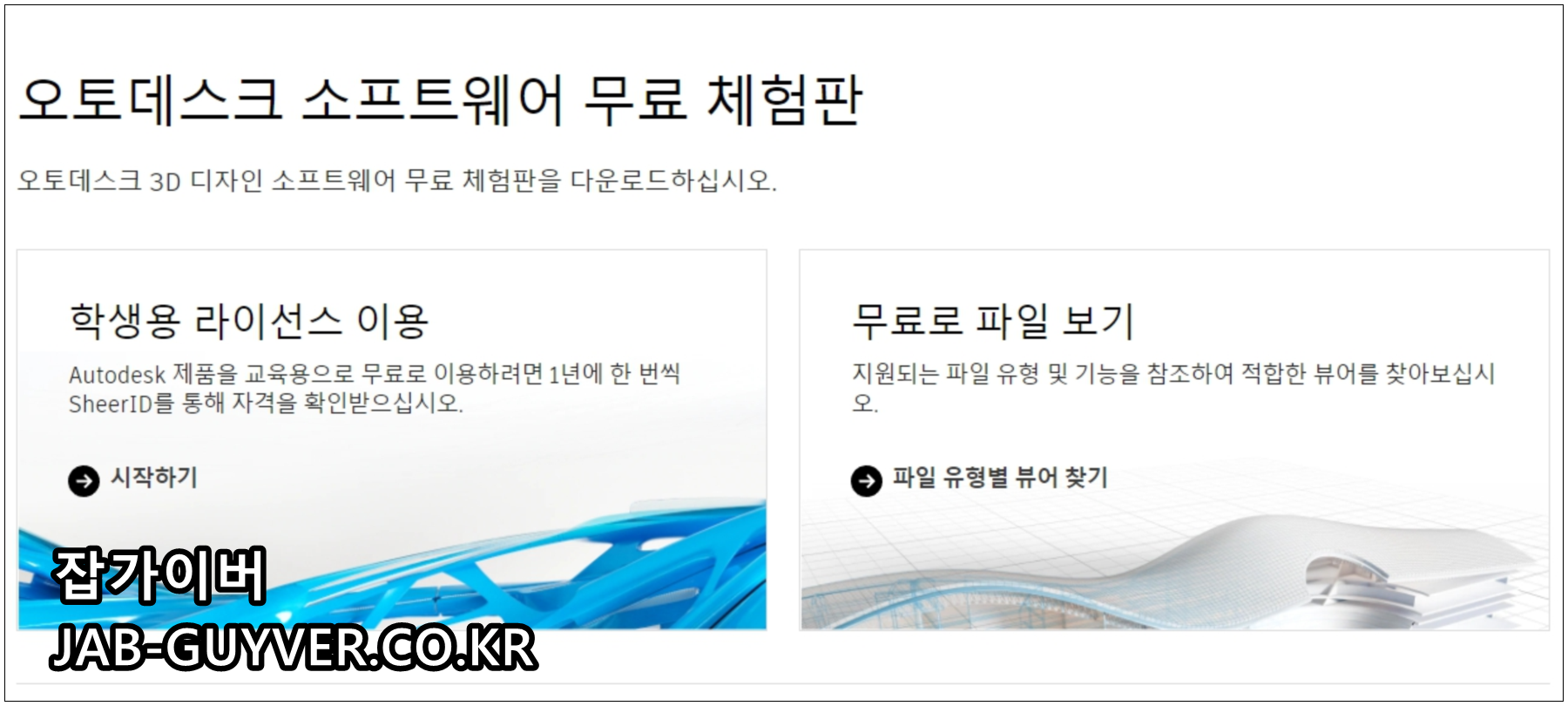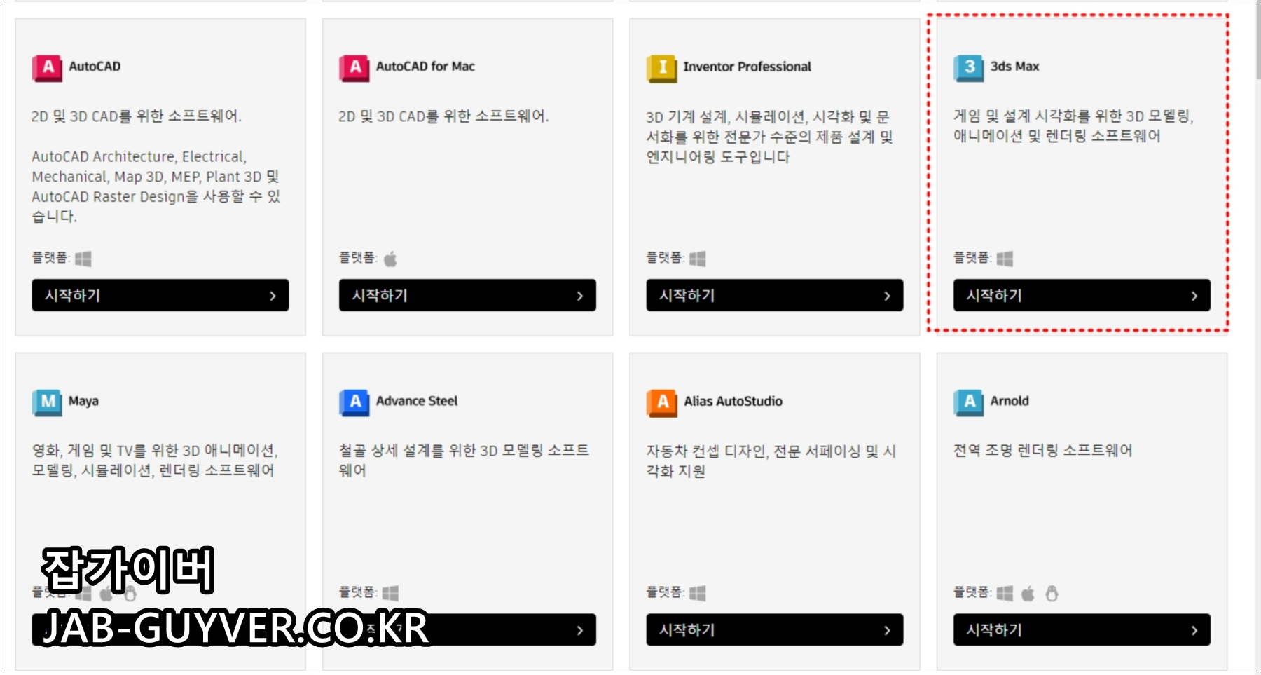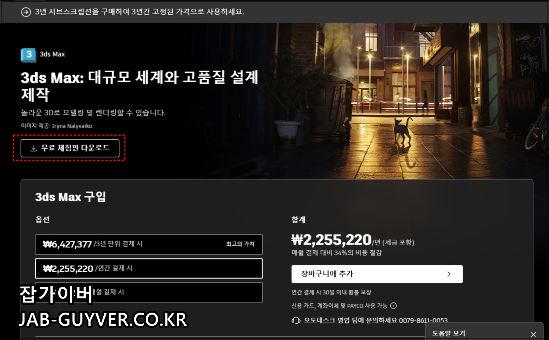 오토데스크 홈페이지로 접속하면 3Ds MAX를 구입하거나 무료 체험판을 사용할 수 있습니다.