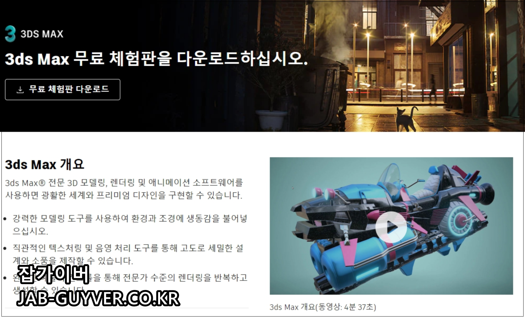 오토데스크 홈페이지로 접속하면 3Ds MAX를 구입하거나 무료 체험판을 사용할 수 있습니다.