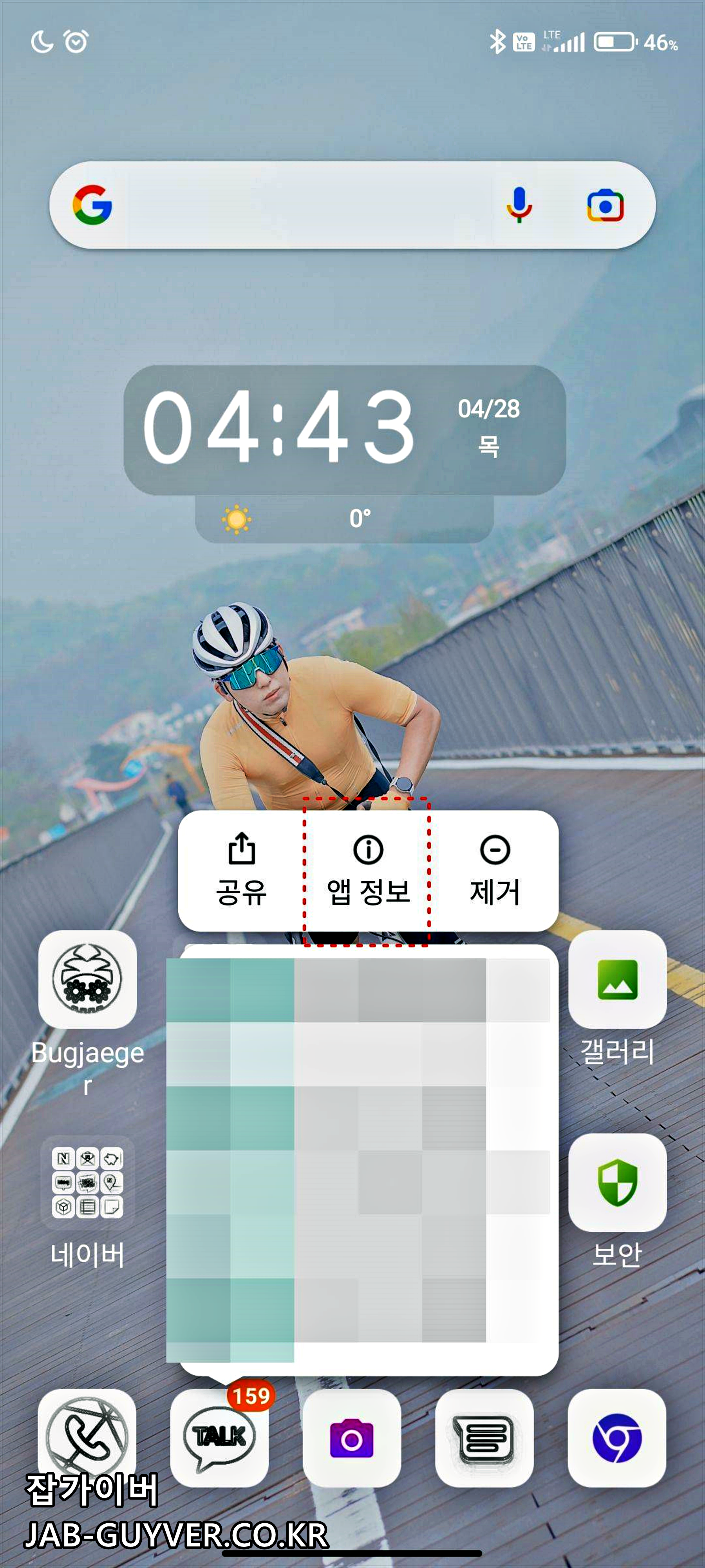 자동동기화가 안되는 앱을 꾸욱 눌러 앱 정보로 들어갑니다.