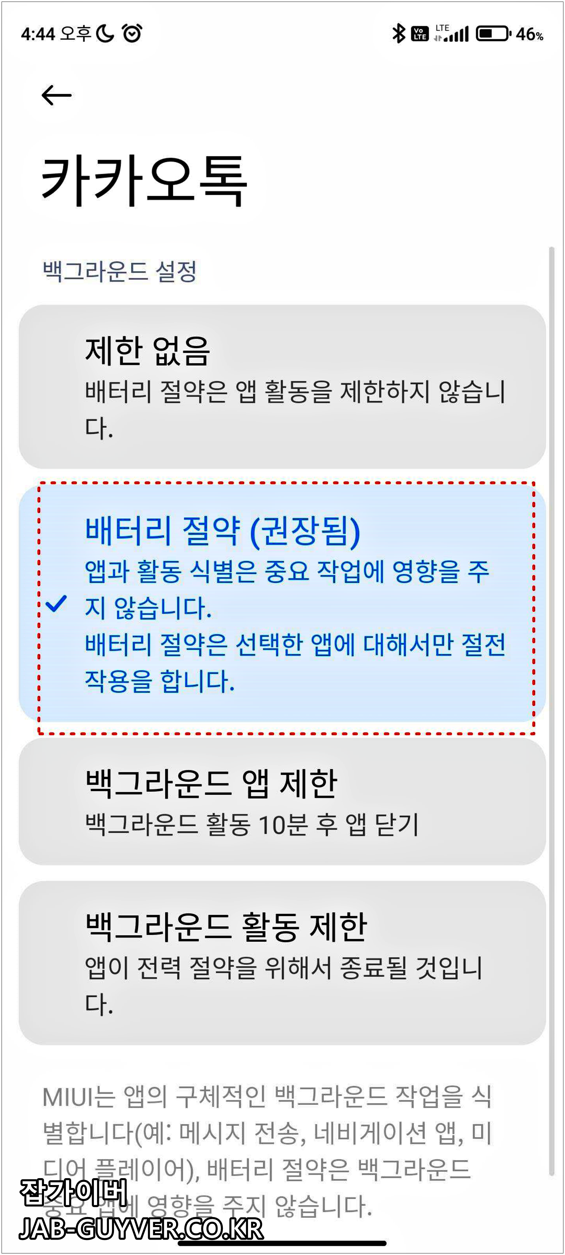 그 외에도 와이파이 연결 및 잠금화면 백그라운드 실행등을 설정하고 배터리 소모를 줄이기 위해 절전모드가 켜져있거나 백그라운드 앱 제한이 되어 있다면 기본설정값으로 변경합니다.