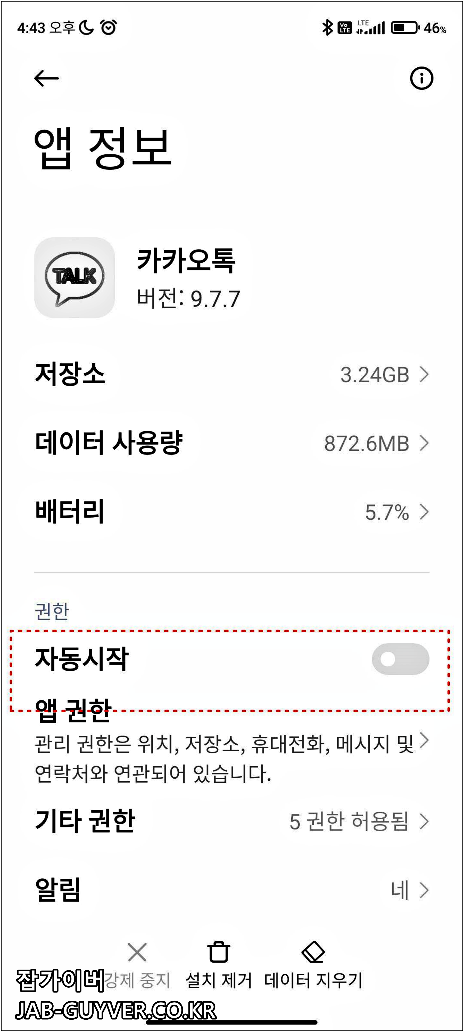 카카오톡 자동시작 동기화