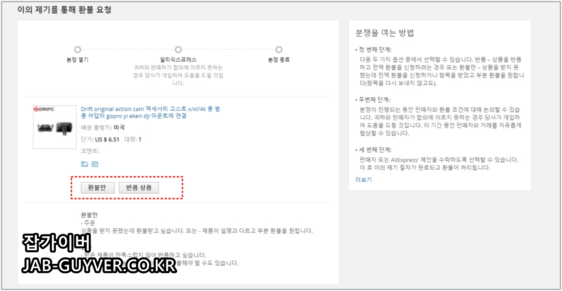 알리익스프레스 환불/반품 관련 FAQ
