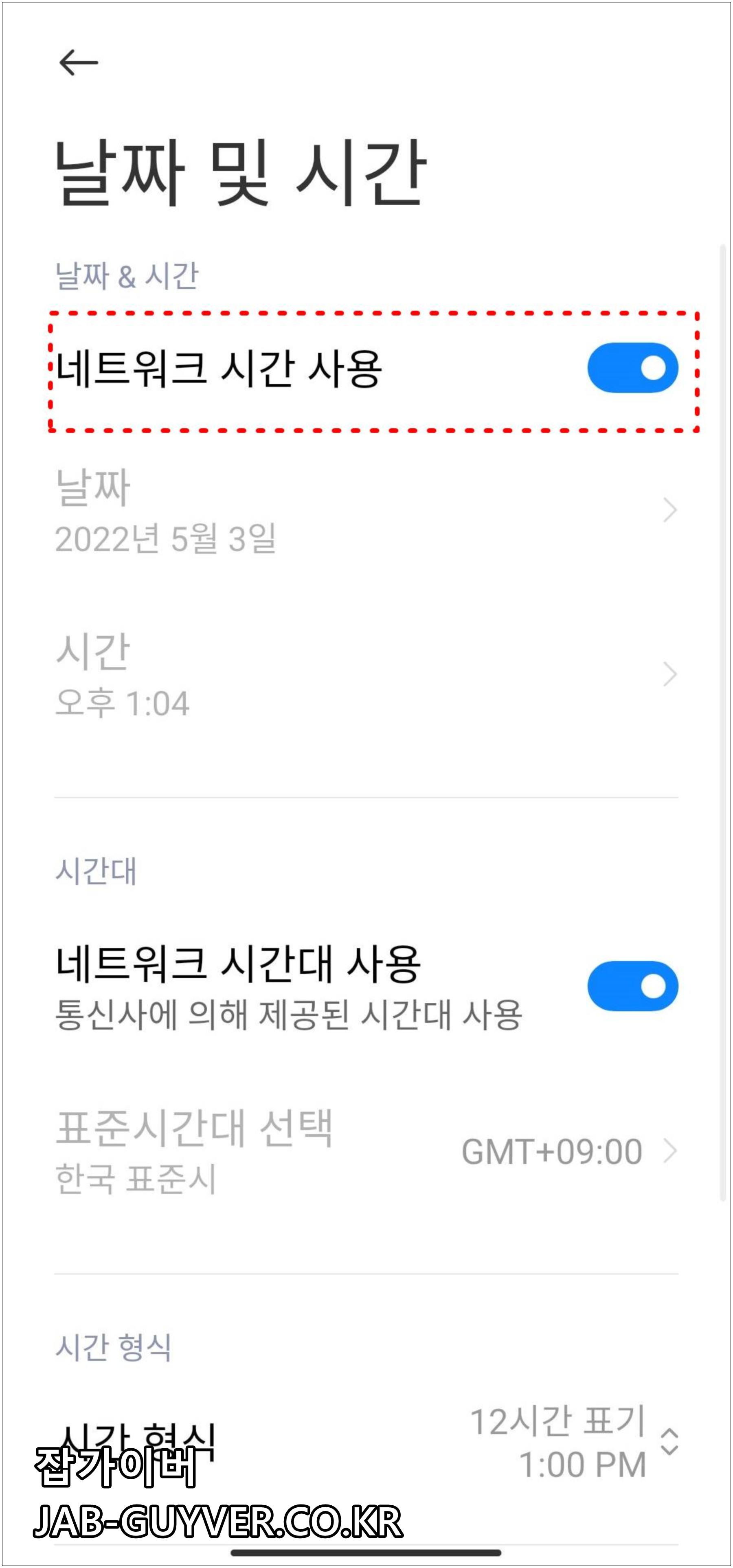 핸드폰 설정 -> 일반 -> 날짜 및 시간으로 들어갑니다.