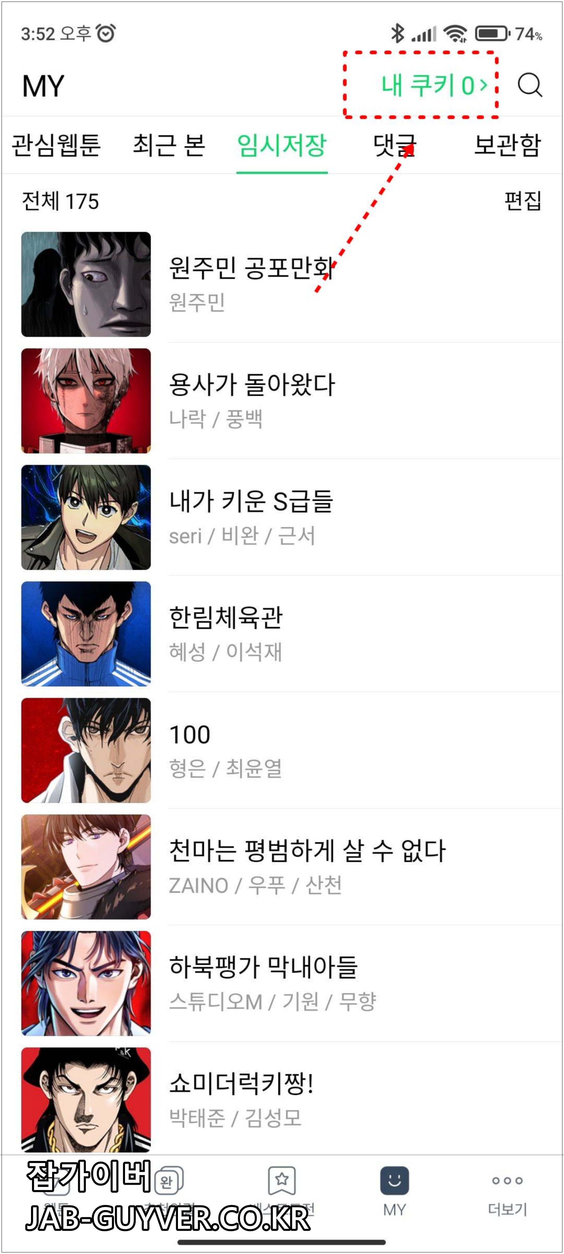 네이버 쿠키 구입 : 네이버 웹툰 앱 -> My -> 내쿠키 -> 보유한 쿠키 확인 후 쿠키 구입