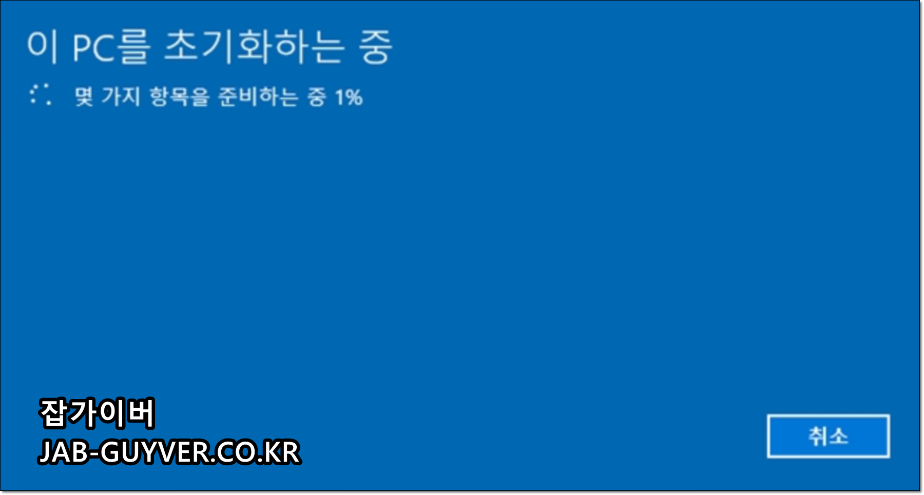 초기화를 진행하게 되면 기존 윈도우 USB 부팅디스크나 설치파일이 없이 윈도우 초기화가 진행됩니다.