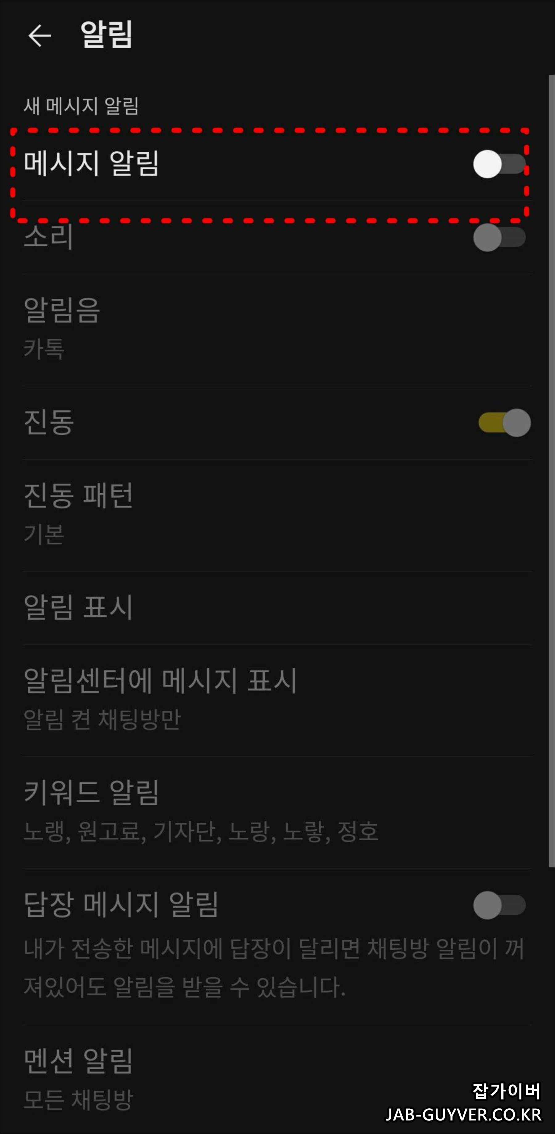 반대로 알림을 끄고 싶다면 비활성화합니다.
