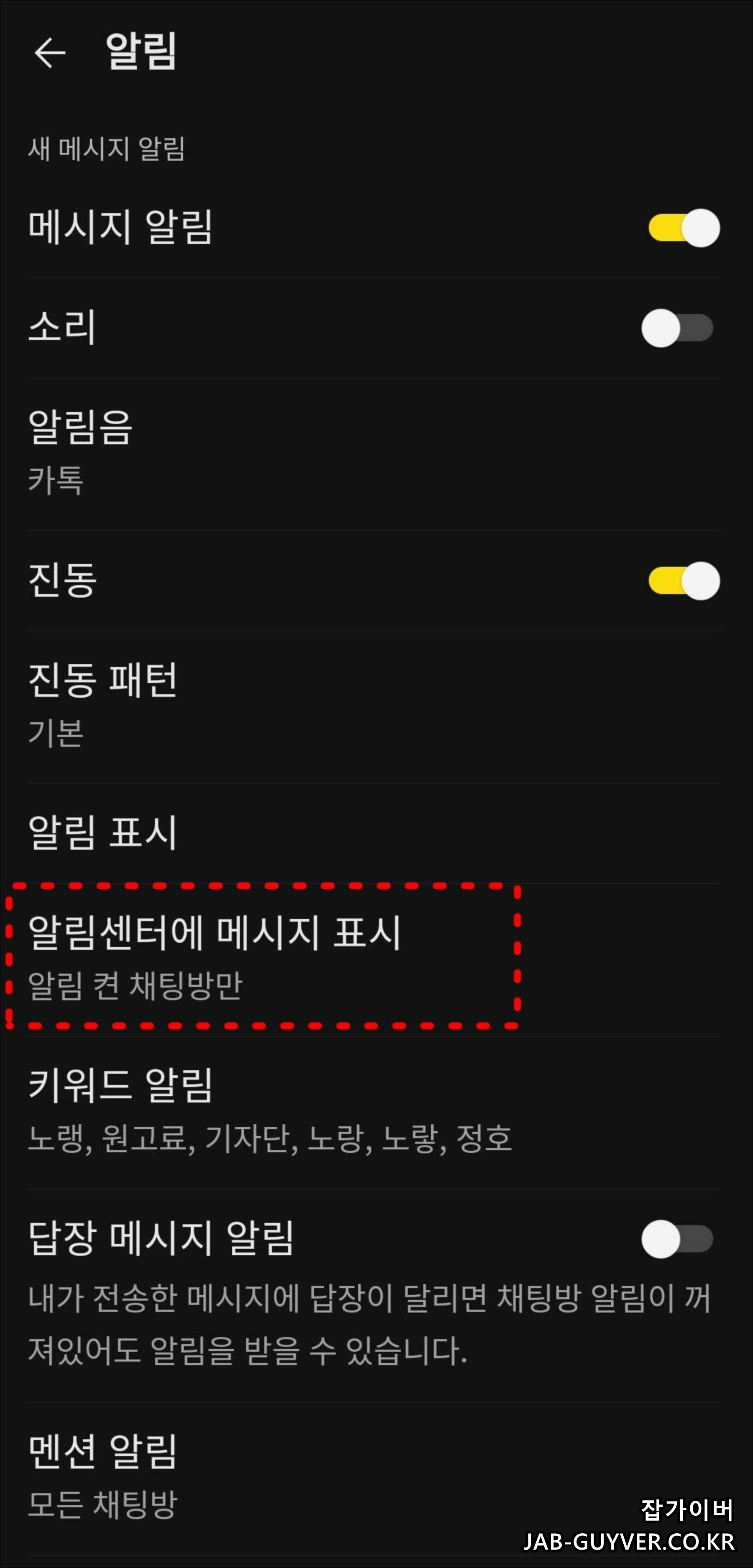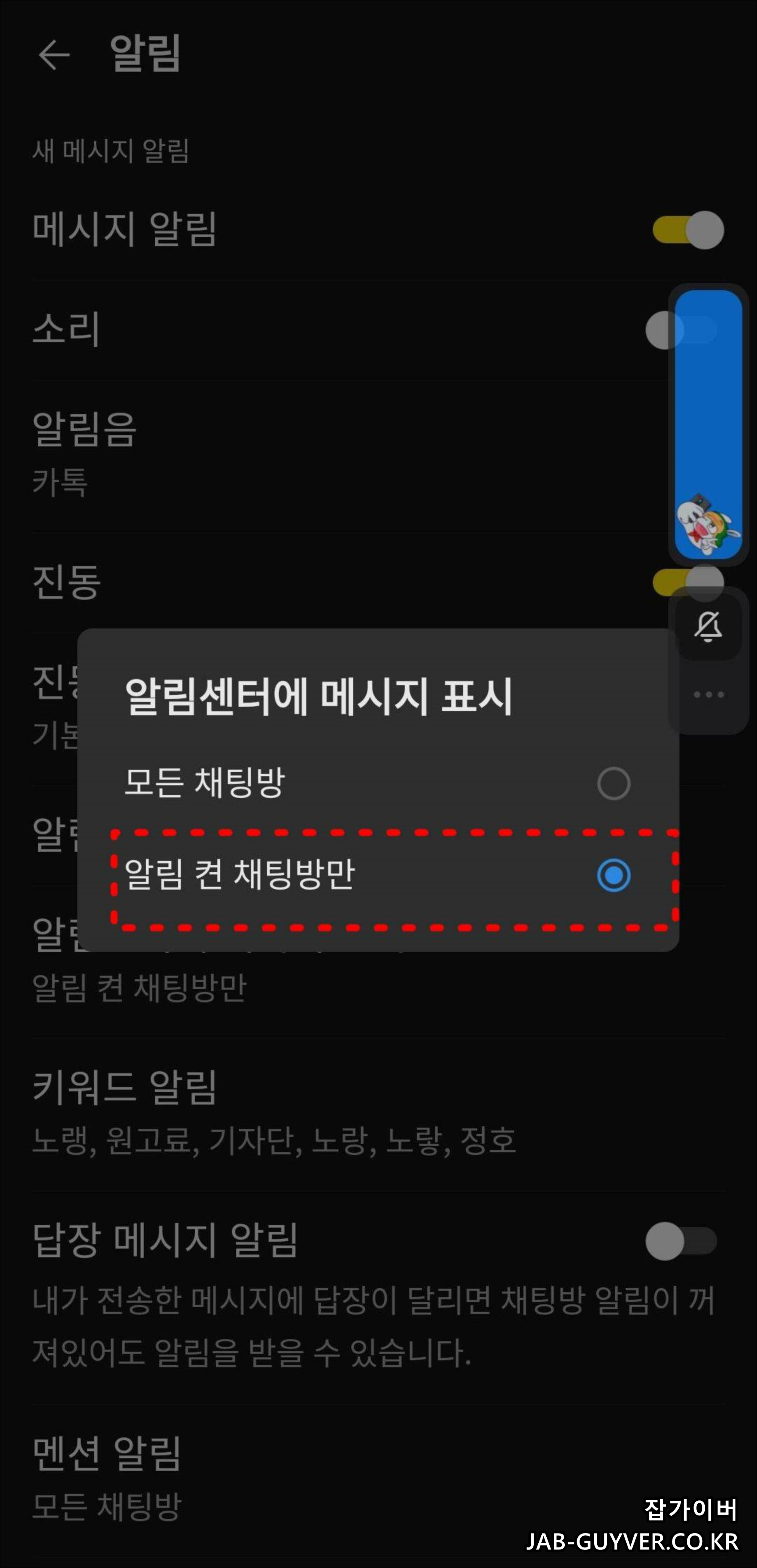 카카오톡 채팅방 알림설정