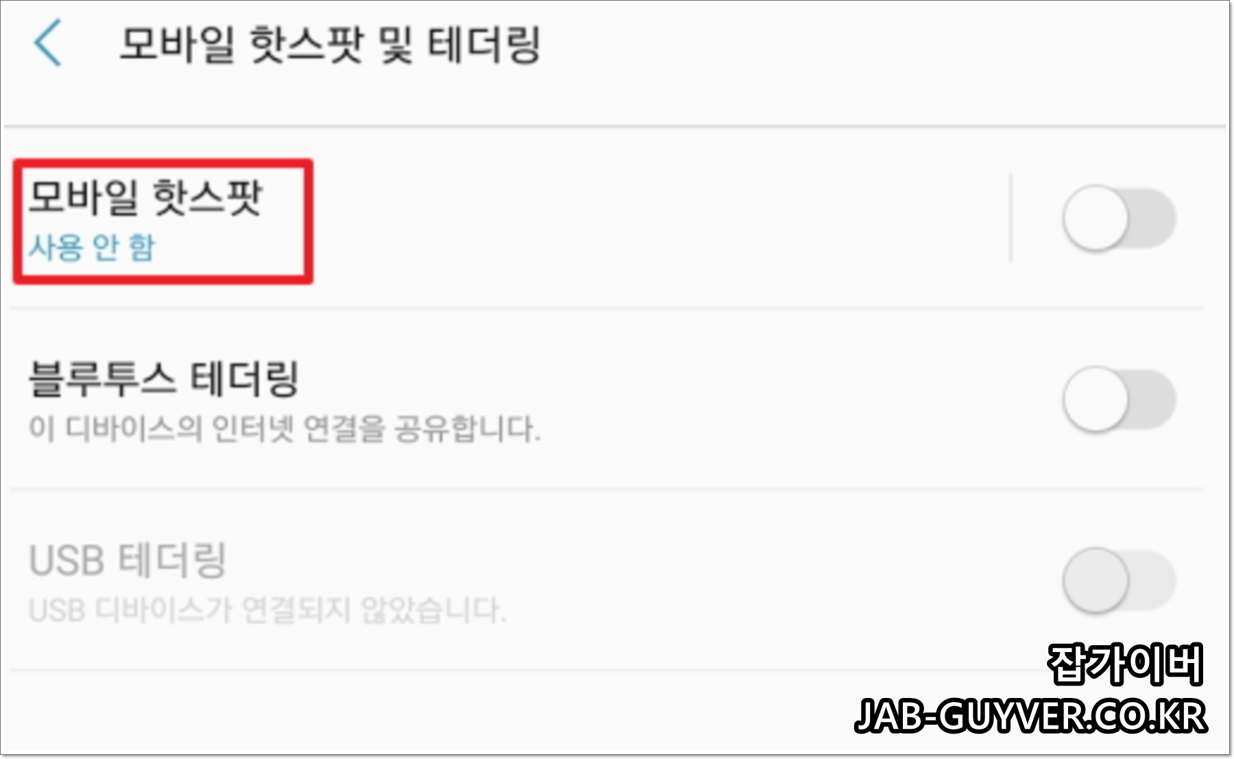 - 핸드폰에서 USB 모바일 테더링을 활성화합니다.