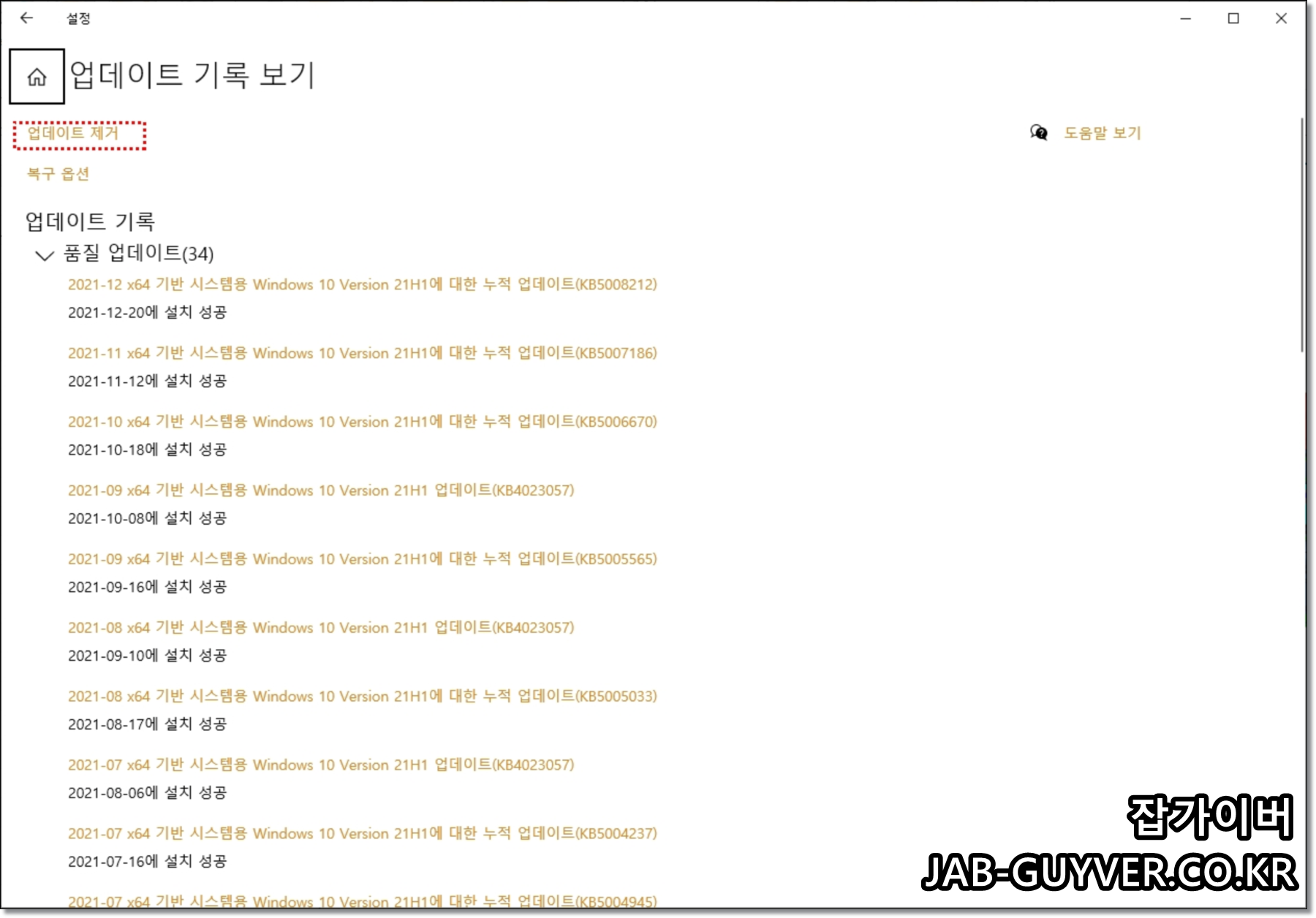 Q. 0x0000011b가 계속 나오면 무조건 업데이트를 지워야 하나요?