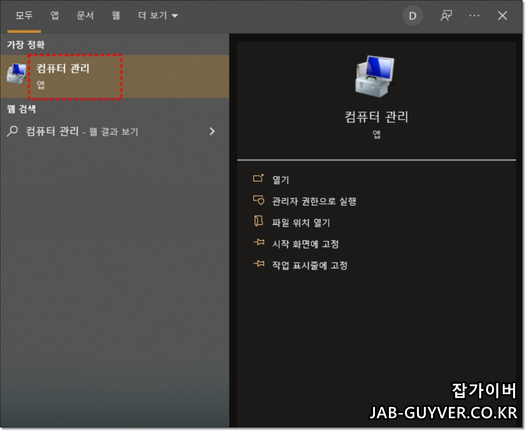 컴퓨터 관리를 실행합니다.