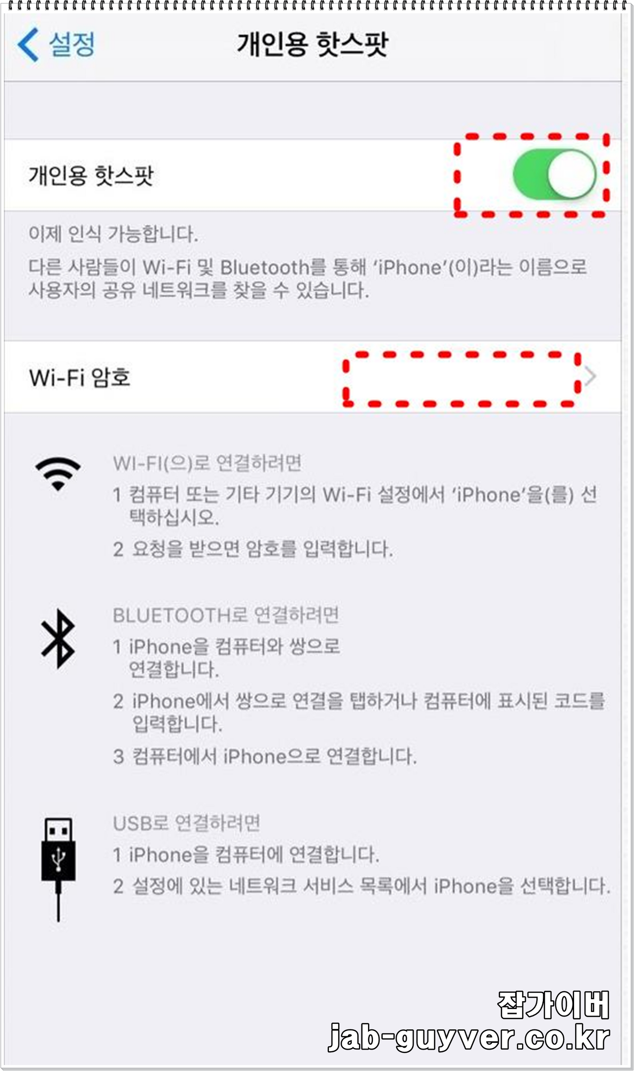 - 개인용 핫스팟이 켜져 있다면 꺼야 합니다.