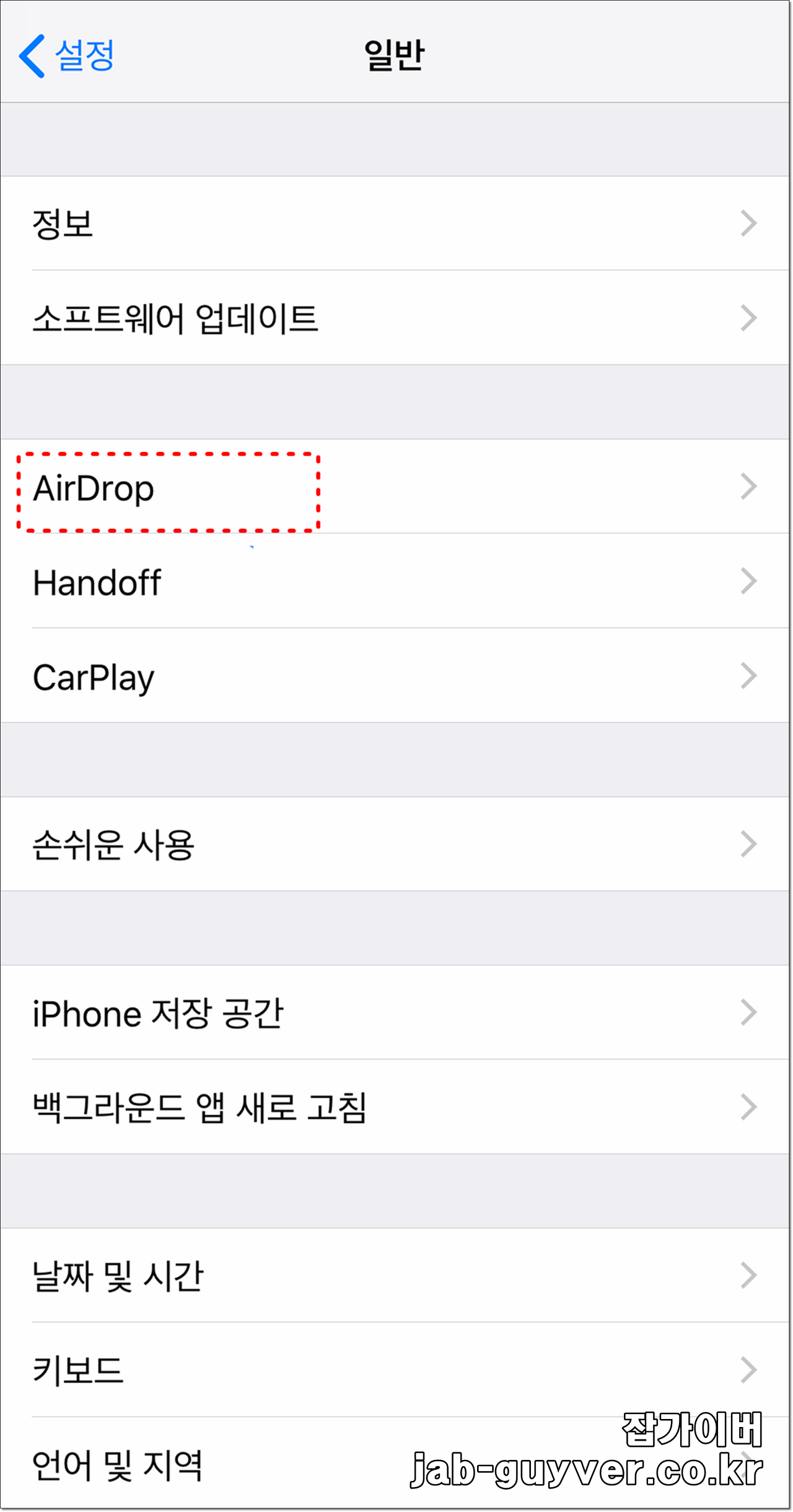 설정 -> 일반 -> Airodrop