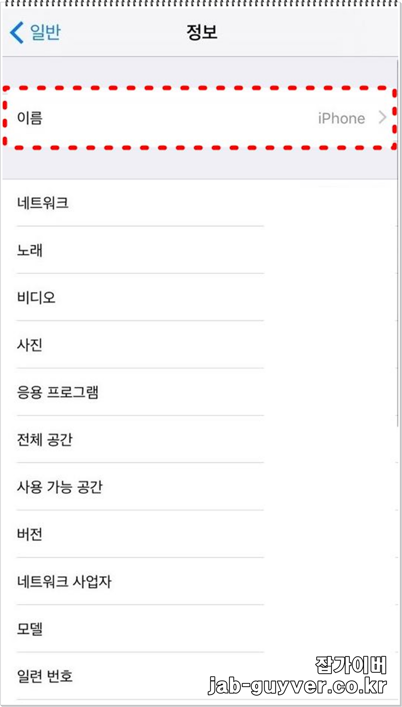 - 아이폰 설정 -> 일반 -> 정보 -> 이름