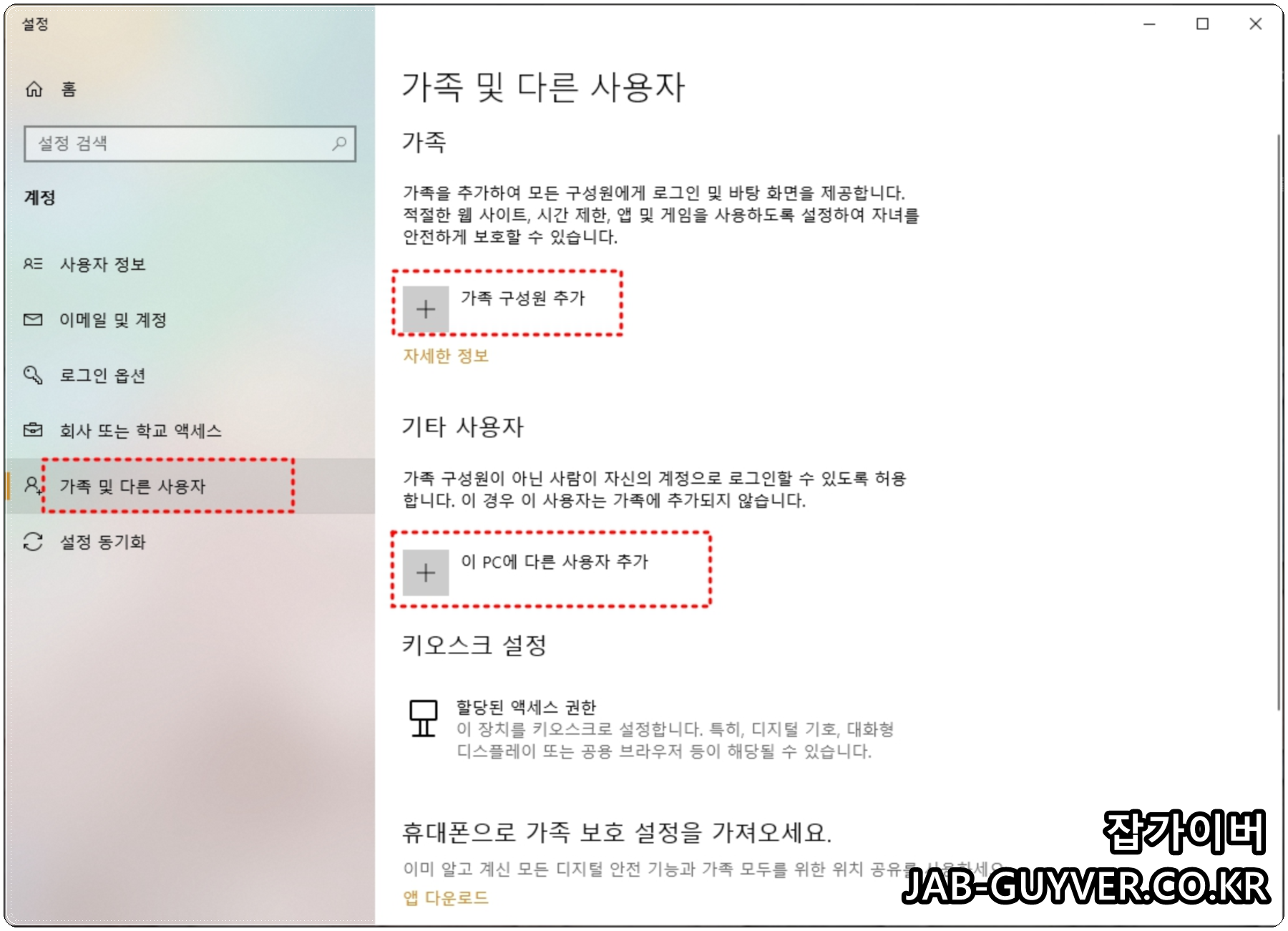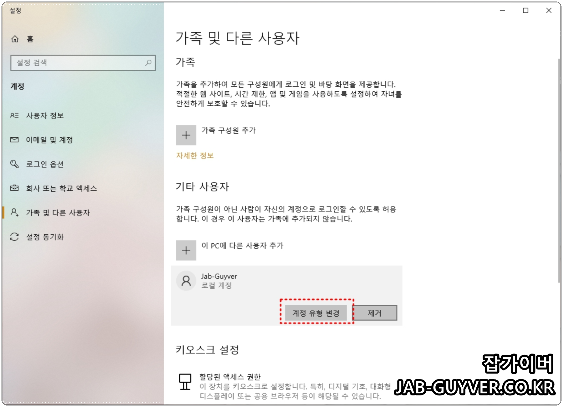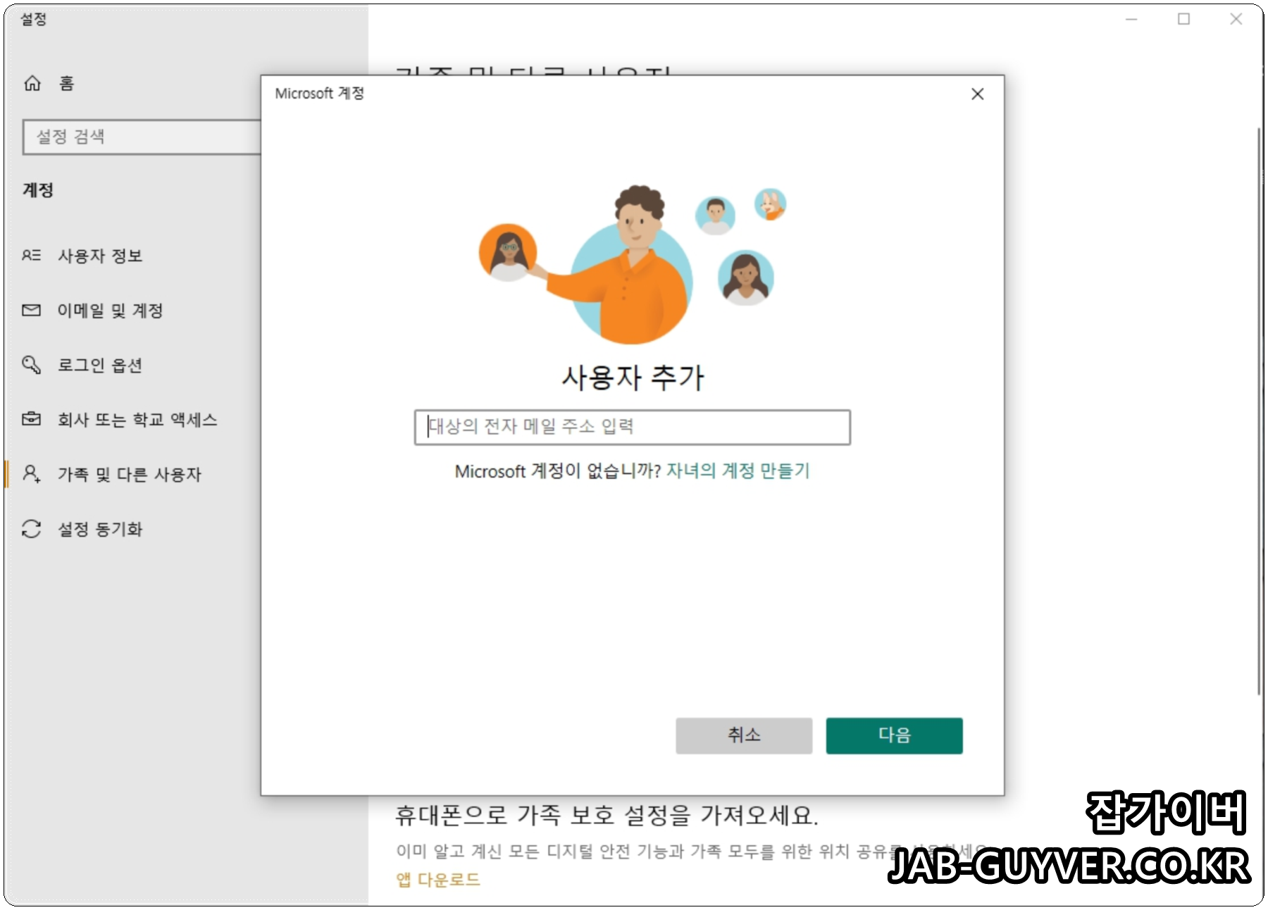 윈도우 사용자계정: 가족 구성원·회사·학교 계정 추가