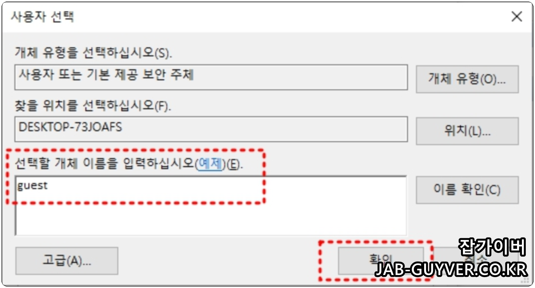 “게스트” 이름으로 로컬 계정 생성해서 대체 |